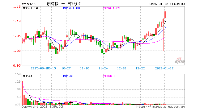1月12日,截止午间收盘,创业板综指ETF鹏华(159289)涨2.26%,报1.132元,成交额271.89万元。创业板综指ETF鹏华(159289)重仓股方面,宁德时代截止午盘跌2.07%,中际旭创涨0.07%,东方财富涨3.15%,迈瑞医疗涨2.20%,新易盛跌2.97%,胜宏科技跌3.05%,阳光电源跌3.90%,汇川技术涨2.94%,蓝思科技涨8.58%,亿纬锂能跌1.65%。
