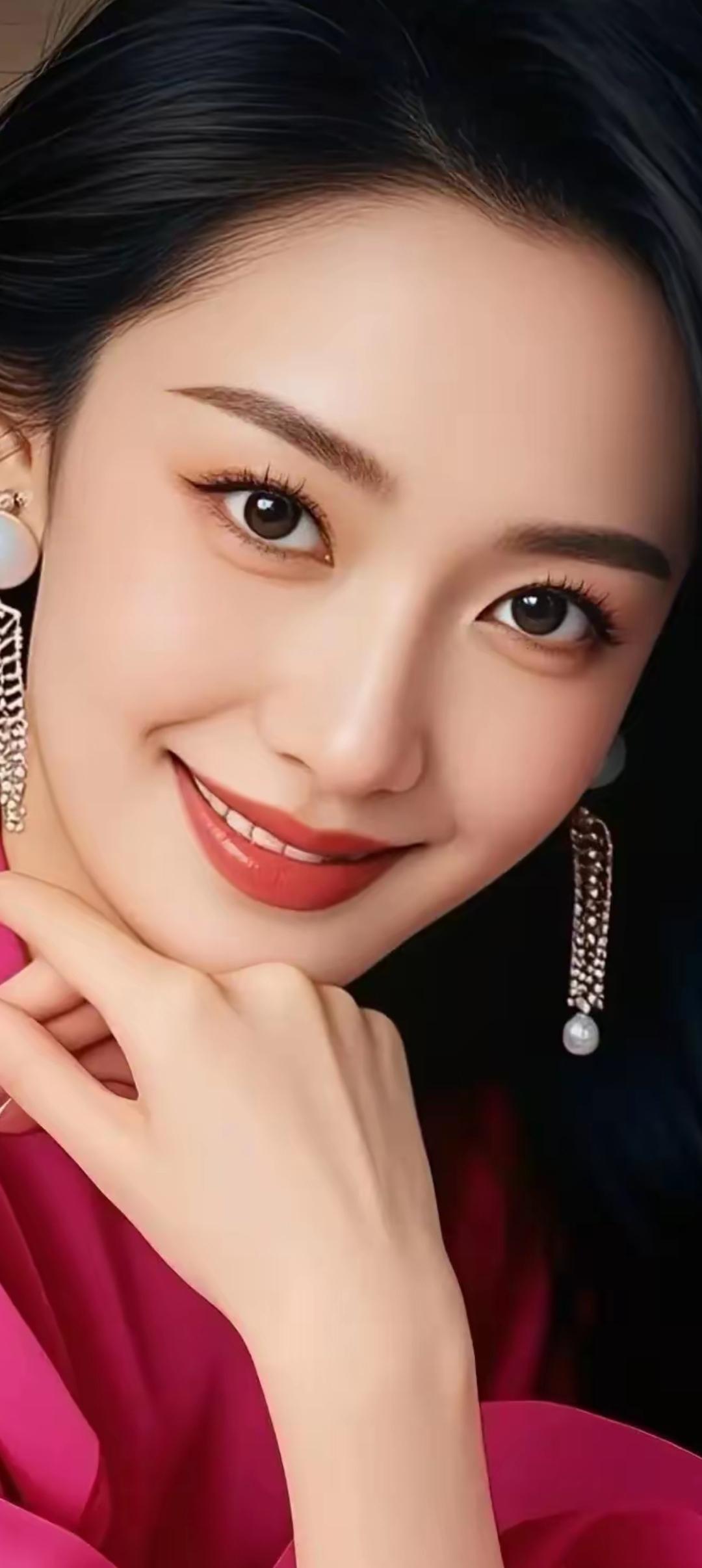 甜美笑容,优雅耳环,粉色礼服,女神范儿十足!😍✨