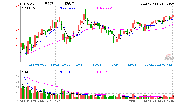 1月12日,截止午间收盘,创业板50ETF易方达(159369)涨0.90%,报1.340元,成交额946.02万元。创业板50ETF易方达(159369)重仓股方面,宁德时代截止午盘跌2.07%,东方财富涨3.15%,中际旭创涨0.07%,新易盛跌2.97%,胜宏科技跌3.05%,汇川技术涨2.94%,阳光电源跌3.90%,迈瑞医疗涨2.20%,同花顺涨8.17%,亿纬锂能跌1.65%。