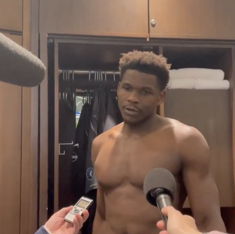 赛后森林狼球员安东尼-爱德华兹接受了记者采访,当被问及文班最后防的时候是什么感受,爱德华兹表示:“我当时心想,靠,麻烦了。”