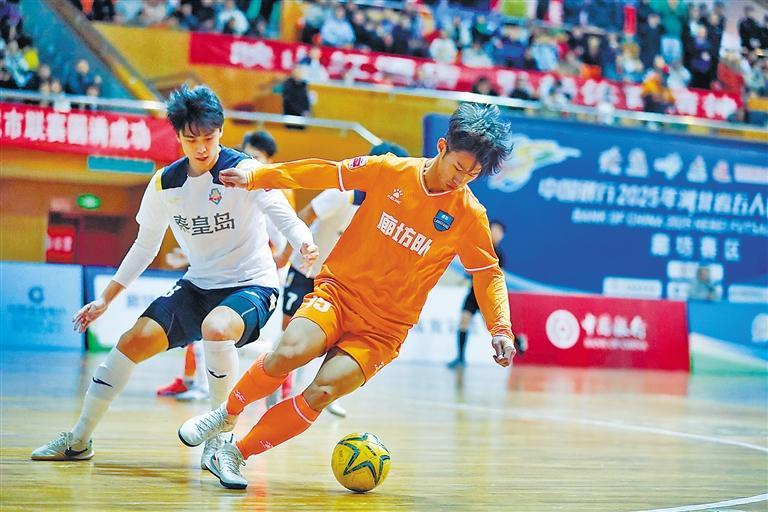 本报讯(记者杨雅淇)1月10日晚,廊坊市体育馆内激情涌动,“河北五超”第22轮赛事火热举行。主场作战的廊坊队迎战秦皇岛队,双方上演了一场攻防转换迅速、节奏紧张激烈的对决。赛事不仅呈现了高水平的五人制足球竞技,更以“体育+”模式融合文旅、商业等多元场景,成为助推城市经济发展的生动实践。