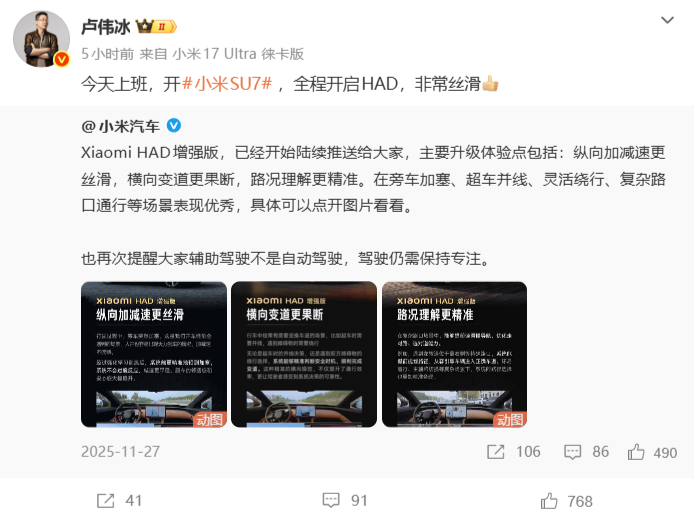 近日,有市场消息称小米集团合伙人、总裁卢伟冰辞职,引发部分网友关注。值得注意的是,卢伟冰在微博认证的小米职务并未发生变化。1月12日,卢伟冰转发了小米汽车动态,并配文称“今天上班”,用上班动态辟谣离职传闻。