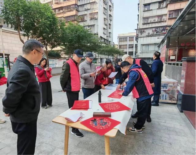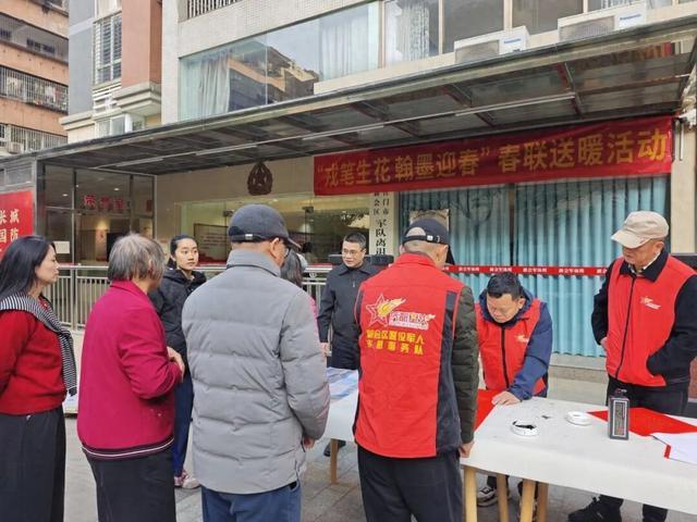 为弘扬中华优秀传统文化,营造喜庆祥和的新春氛围,激励退役军人发扬志愿精神助力基层治理,1月7日上午,新会区军休所组织“红星闪烁”志愿服务队开展“戎笔生花翰墨迎春”新春送暖活动。军休干部发挥书法特长,以笔墨传情,以丹青寄意,深入居民小区书写春联,将浓浓的年味和真挚的祝福送到群众手中。
