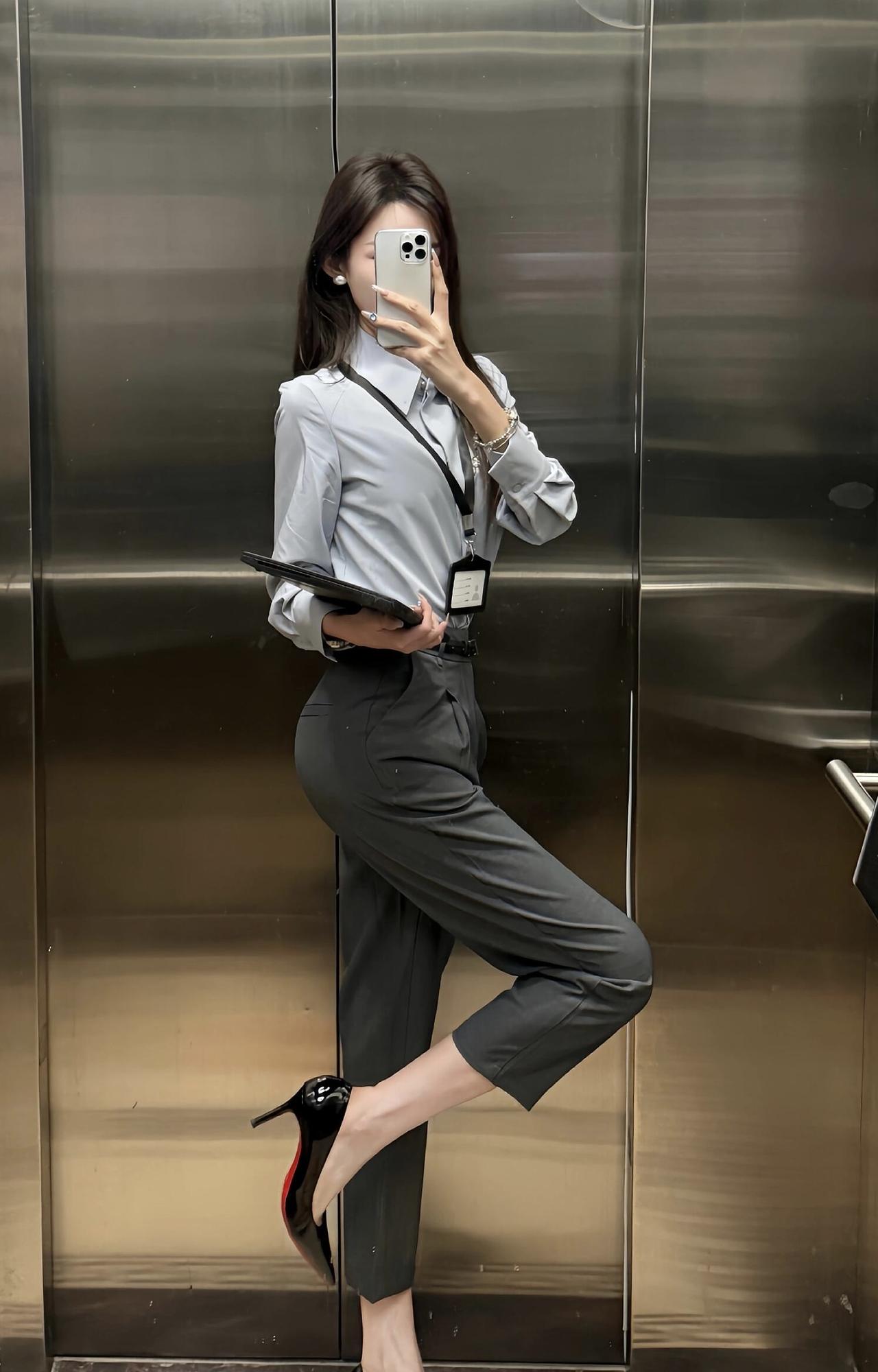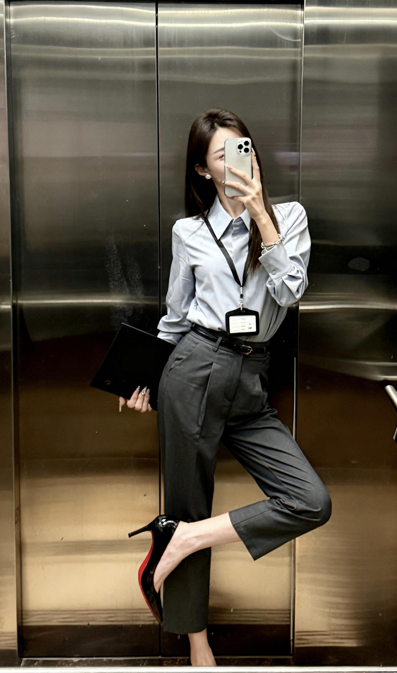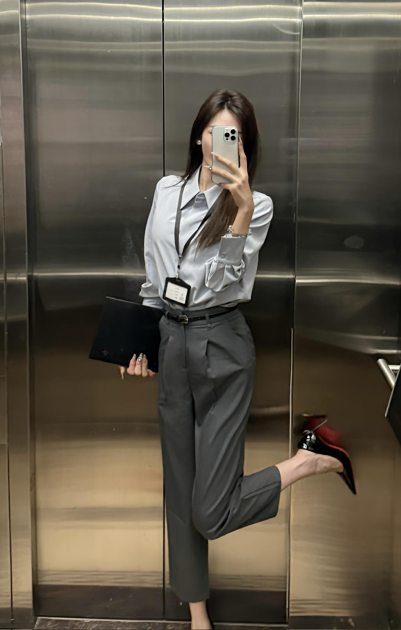 记录我的2026今日穿搭(OOTD) ootd穿搭 今日穿搭推荐:职场通勤风,走简约干练又带点精致女人味的路线: 1. 上衣:浅灰色缎面质感衬衫,面料垂坠感强,弱化了传统衬衫的刻板,增添了柔润的高级感,宽松版型兼顾舒适与利落。 2. 下装:深灰色高腰烟管裤,高腰设计拉长腿部比例,烟管裤的直筒剪裁修饰腿型,与浅灰衬衫形成同色系深浅层次,整体协调又显质感。 3. 鞋履:黑色红底高跟鞋是点睛之笔,提升气场的同时增添性感细节。 适合场合 1. 日常职场:商务办公、日常通勤、部门会议等常规职场场景,既符合职场着装规范,又比基础款职业装更有设计感。 2. 轻商务社交:客户洽谈、商务下午茶、行业小型交流会等,简约高级的搭配能展现专业度与审美品味。 3. 半正式场合:公司小型年会、职场答谢宴等,搭配精致首饰后,可从职场风无缝切换为轻礼服感,适配半正式的社交氛围。