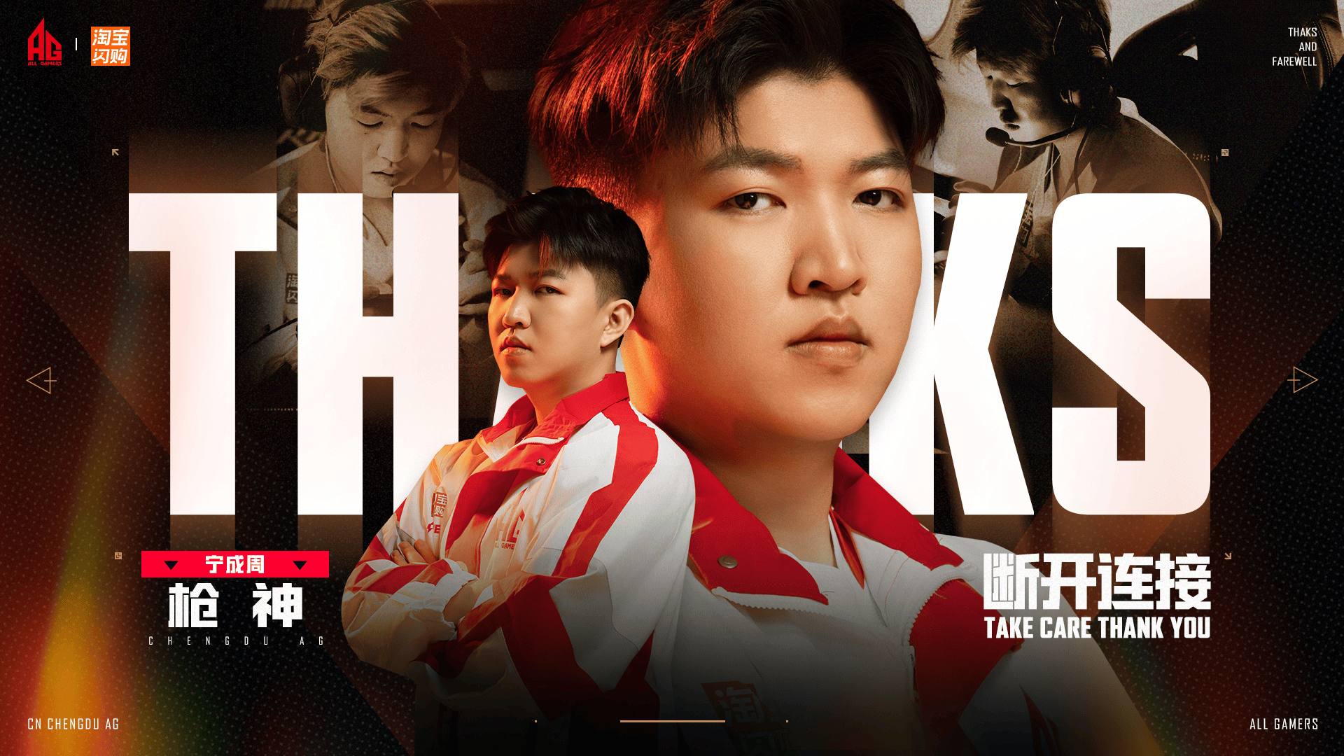 成都AG·枪神正式断开连接,感谢你为成都AG和平精英战队的贡献和付出。感谢你两度投身于此的热忱,感谢你无论巅峰或低谷的坚持。