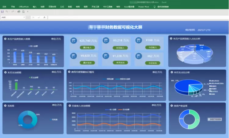 在财务管理方面,平台整合《月度收入明细表》《月度支出明细表》《月度费用预算表》《利润核算表》等数据,构建统一的财务数据可视化大屏。系统能够实时呈现产品收入结构、支出构成、费用预算执行情况以及毛利率、净资产收益率等关键指标。财务分析由事后汇总转向实时监控,使财务部门能够更早识别经营风险,为管理层提供更具前瞻性的决策支持。