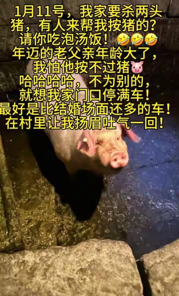 全网喊话帮忙杀年猪,结果来了上千人,小姐姐都懵了! 最近,一位年轻小姐姐在社交平台上发出了一条特别的请求。她说自己家里准备杀年猪,想请大家帮忙出点力。没想到,这条简单的请求一发出去,立刻引发了巨大的反响。短时间内,数千网友纷纷留言表示愿意帮忙,甚至有人直接跑到现场,带着工具赶来。现场场面一度变得热闹非凡,小姐姐完全没想到会引来如此多的“热心肠”。很多人还在评论区开玩笑,说这是“全民助力杀猪”的盛事,大家都在期待这场“全民行动”会带来什么样的趣事。 这次事件让我们看到了社会的温暖和团结。大家愿意伸出援手,愿意用自己的行动去守护那些传统的仪式。这种集体的力量令人振奋,也让人相信,传统文化的火种在现代社会依然可以被点燃。每个人都在用自己的方式表达对家乡、对节日的热爱。网络成为了连接彼此的桥梁,也让那些曾经只属于乡村的习俗变得更加生动和有趣。 现代社会中传统文化的传承需要创新和包容,用网络的方式激发更多人的参与,让传统节日变得更加丰富多彩。每个人的热情都值得被尊重,每一份努力都在传递着温暖。我们要珍惜这些瞬间,把握住那份纯粹的感动。让我们用心去守护那些珍贵的传统,让年味在每个人的心中永远不灭。 这次“帮忙杀猪”的热潮虽然短暂,却带来了深刻的启示。它告诉我们,传统与现代可以完美结合,网络可以成为传承的桥梁。只要有心,就能让那些古老的习俗在新时代焕发出新的光彩。我们每个人都可以成为传统文化的传递者,用行动让节日更有意义。让我们一起期待,未来的春节因为这些温暖的瞬间变得更加精彩纷呈。 你怎么看待这种全民参与传统习俗的方式?你觉得网络的力量能否真正帮助我们更好地传承文化?欢迎留言分享你的看法,让我们共同讨论这个充满温情和希望的话题。腊肉杀年猪 宰年猪 大年猪 年猪趣事