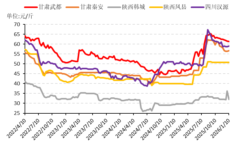 图1部分特级红花椒产区批发均价走势图