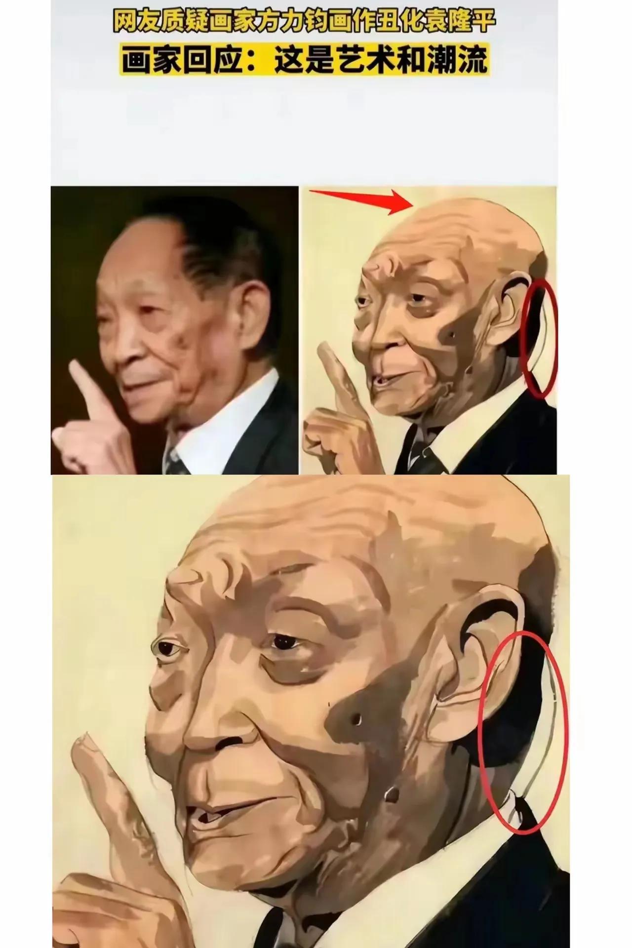忍不了! 中央美院方立均故意丑化袁老先生?秃顶加小辫子,这不是恶心人吗 看到方立均画的袁隆平老先生,我胸口直堵得慌。这位让咱们中国人饭碗端得稳稳的 “当代神农”,那位一辈子蹲在田埂上跟稻穗说话的慈祥老人,竟被画成了秃顶带小辫子的模样。 那尖嘴猴腮的长相,那说不出的猥琐神态,哪儿有半分袁老的影子?这根本不是艺术创作,就是赤裸裸的丑化,是打心底里对老一辈科学家的不尊重。 方立均可不是什么无名小卒。他顶着中央美院毕业的光环,是 23 所艺术院校的客座教授,还曾被联合国聘为 “和平大使”。 2022 年西安美术馆那场 “人间仙境” 画展上,他一口气展出了三幅涉及袁老的画作。每一幅都刻意放大了扭曲的五官,那所谓的 “小辫子” 更是大有来头,分明是历史上清军羞辱汉人的 “金钱鼠尾” 样式。 他身为知名画家,不可能不懂这段屈辱历史,却偏要把这种带有羞辱意味的元素安在袁老身上,其用心之险恶,让人不寒而栗。 有人替他辩解这是 “艺术风格”,可艺术创作总得有底线。方立均画自己家人时,笔下人物个个形象正常,眉眼间满是温情。 到了袁老这里,就变成了刻意的丑化和歪曲,这哪里是风格问题?分明是双重标准,是对袁老的针对性冒犯。 他的画作在国外屡屡被炒作,单幅作品曾拍出 6300 万元的天价,他跑到日本、德国等国办展,却很少在国内露面。说白了,他就是靠着这种博眼球的丑化创作,迎合某些西方势力的猎奇心理,为自己谋取名利。 法律早就给艺术创作划清了红线。《民法典》明确规定,任何组织和个人不得以丑化、污损等方式侵害他人肖像权,死者的肖像权同样受法律保护。之前就有公司未经许可使用袁老的姓名和肖像卖大米,被隆平高科告上法庭,最终湖南高院判决其赔偿 10 万元并停止侵权。 还有人恶搞鲁迅,把这位文豪做成臭豆腐形状、染金发挂金项链,法律同样认定这种行为构成侵权。袁老的肖像权估值高达 5151 万元,这背后是全国人民对他的爱戴和认可,不是任何人可以随意践踏的。 袁老的一生都奉献给了杂交水稻事业。他目睹过三年自然灾害时的饥馑景象,立志要用农业科学战胜饥饿。数十年里,他顶着烈日在田间劳作,用一粒种子改变了中国,让亿万人民不再挨饿。这样一位为国为民的功臣,理应得到全社会的尊崇。 最高人民法院 2023 年公布的十大案件中,就有侵害袁隆平院士名誉荣誉的民事公益诉讼案,那些歪曲丑化袁老的人已经受到了法律的制裁。方立均的行为,和这些违法者没有本质区别。 艺术从来不是丑化他人的遮羞布。当年贾玲在小品中恶搞花木兰,被木兰文化研究中心要求公开道歉;“杜甫很忙” 的恶搞热潮中,也有专家明确指出恶搞要有度,不能超越底线。 袁老不是普通的公众人物,他是民族的脊梁,是亿万人民心中的精神偶像。对他的任何创作,都必须建立在尊重的基础上。方立均拿着国家给予的荣誉,享受着社会提供的资源,却用画笔亵渎民族英雄,这种行为既违背了道德良知,也触碰了法律红线。 咱们中老年人都经历过粮食短缺的日子,更明白袁老的贡献有多珍贵。他的形象刻在每个人的心里,是慈祥、是坚毅、是朴素。方立均的丑化画作,不仅伤害了全国人民的感情,更破坏了社会的公序良俗。 艺术可以创新,可以突破,但绝对不能以牺牲尊重为代价,不能以丑化英雄为噱头。希望相关部门能严肃处理这种行为,也希望所有创作者都能明白,真正的艺术应该传递美好、弘扬正气,而不是制造对立、亵渎崇高。袁老的功绩不容抹杀,他的形象更不容玷污,这是我们每个人都要坚守的底线。