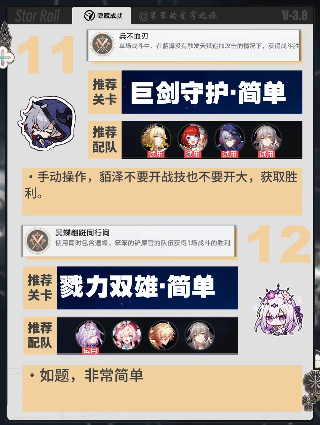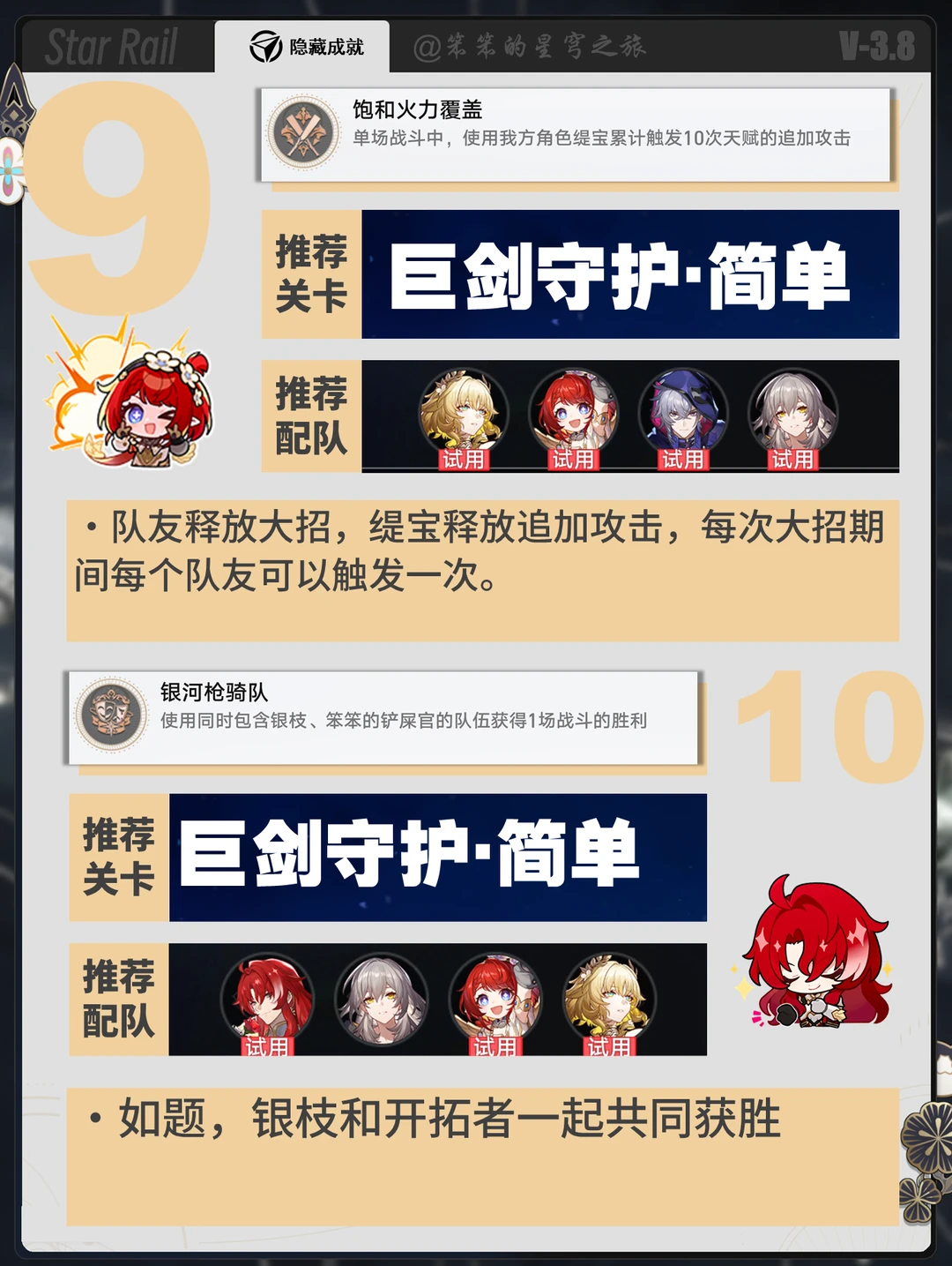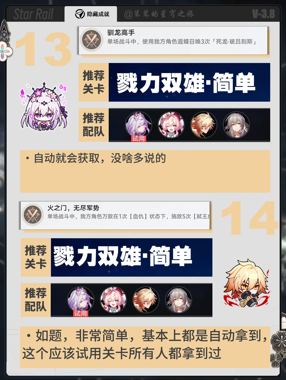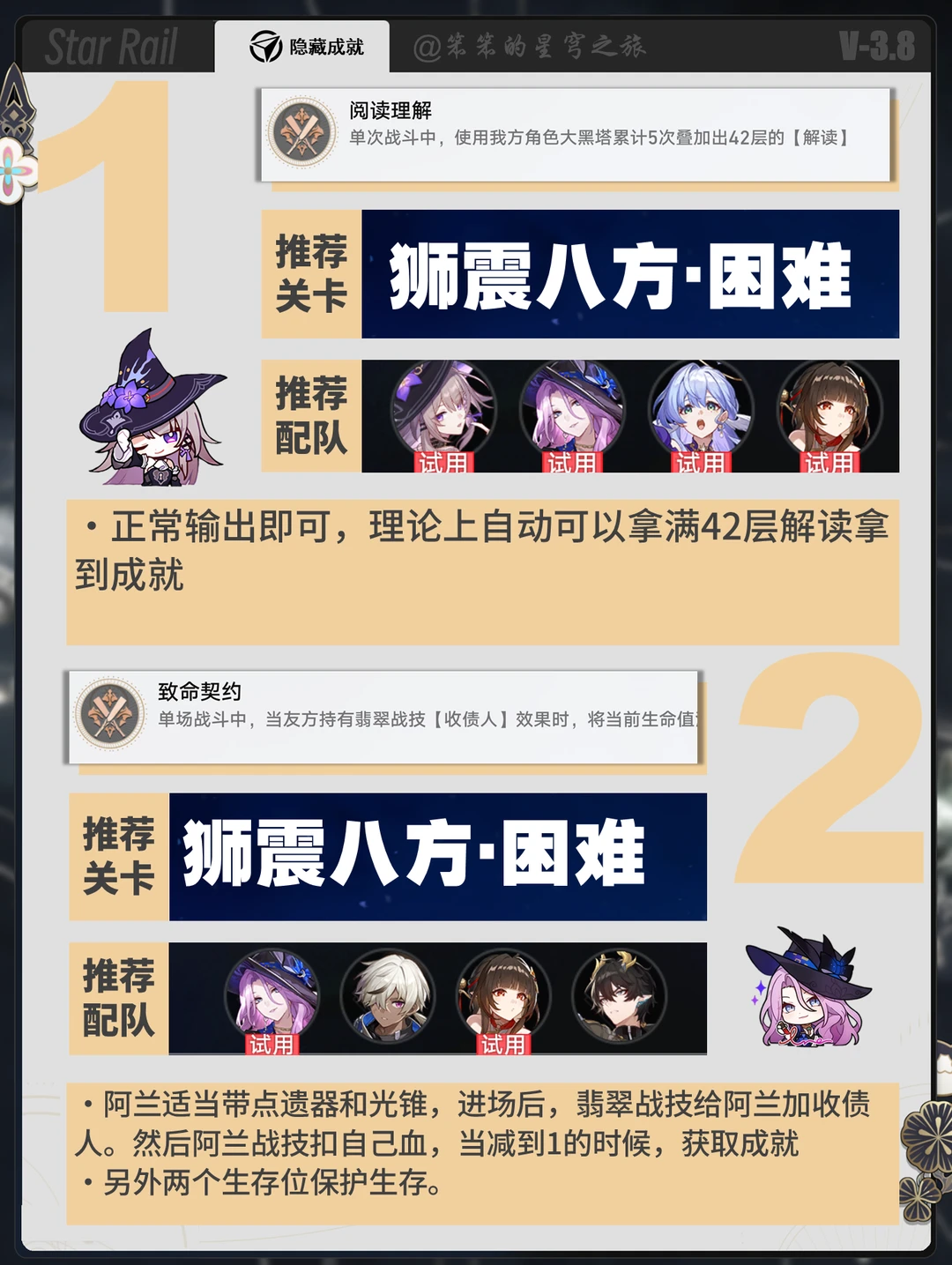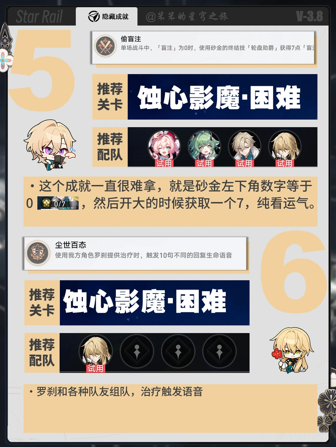 🐱大家好,我是笨笨的铲屎官 小活动余晖残卷可以拿的几个成就 利用活动的试用角色速速拿下这几个成就吧 有几个比较古早的角色专属成就 如银枝、符玄还是比较少见的 大家查漏补缺一下吧
