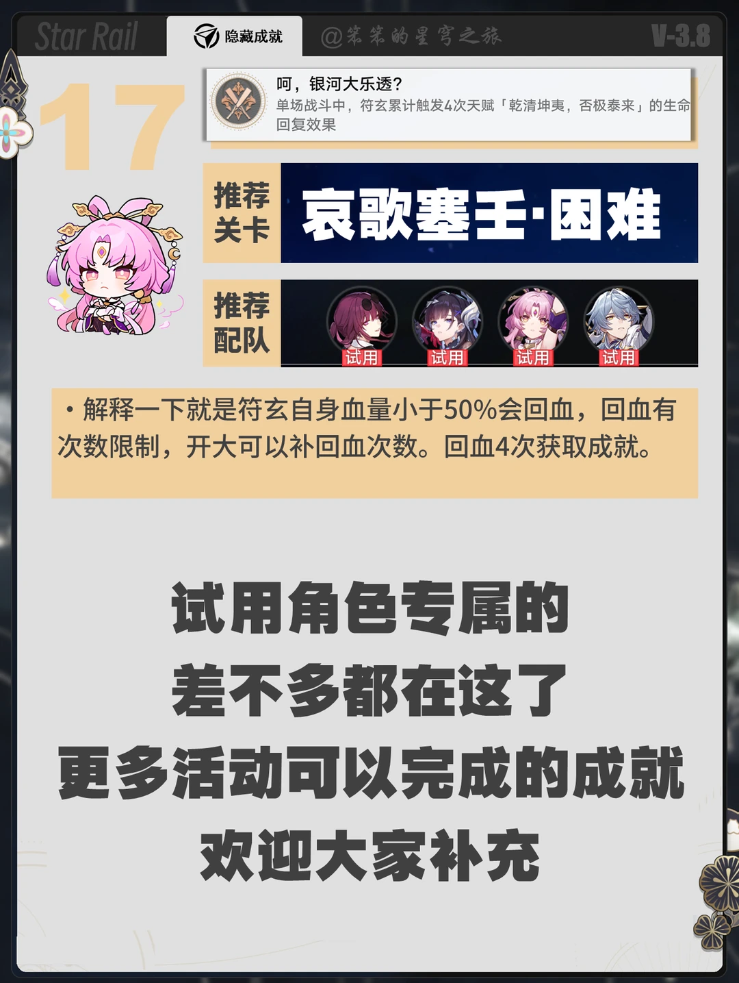 居然有符玄的试用,这几个角色专属成就