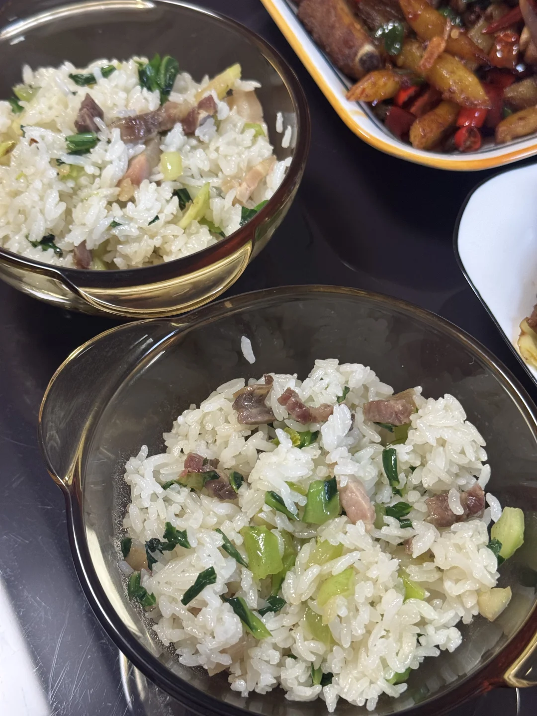 昨儿回我妈家,临走我爸给我打包了2袋刚晒干的腊肉和腊肠。我这前脚进门刚放下,老