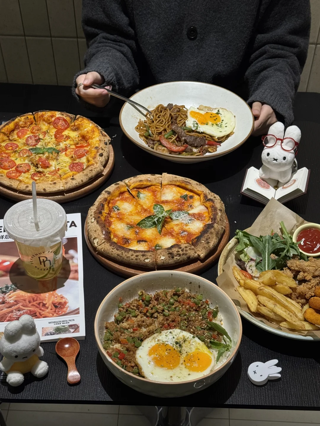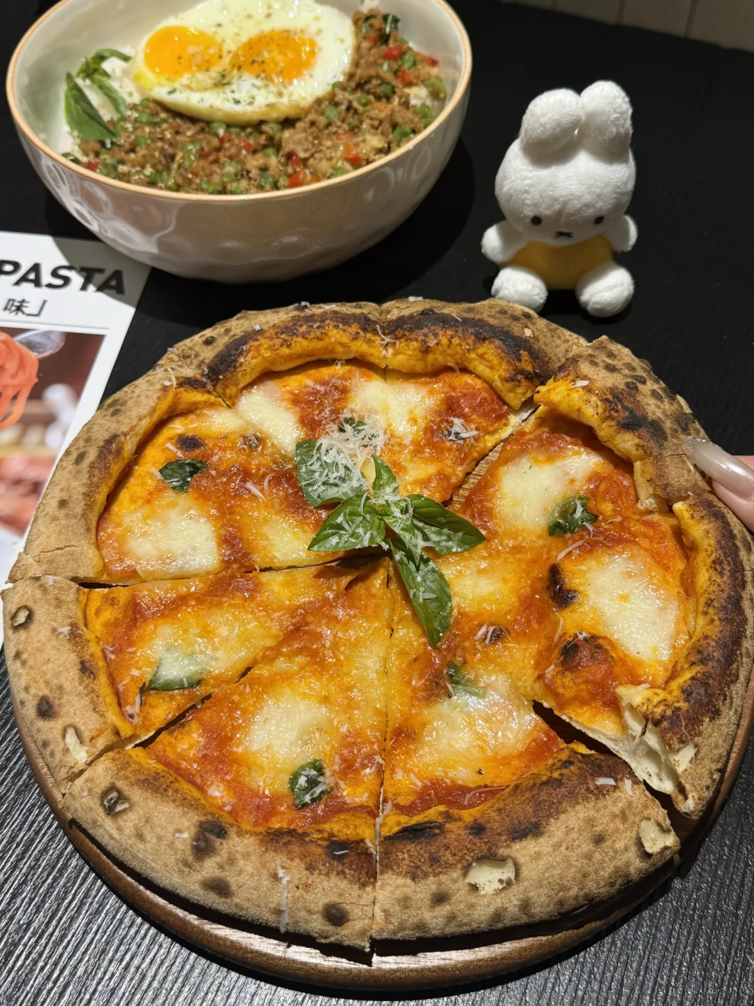 终于也开来滨江宝龙了!! 手工现做的披萨🤤口感真的不一样!! 番茄肉酱披萨、玛格丽特披萨🍕饼底是薄薄的,塞满了料,考的焦焦脆脆又有点弹牙,好好次~~ 罗勒风暴打抛饭,搅拌均匀后吃好绝!!黑胡椒牛肉意大利面🍝也不错!一人食很合适!!