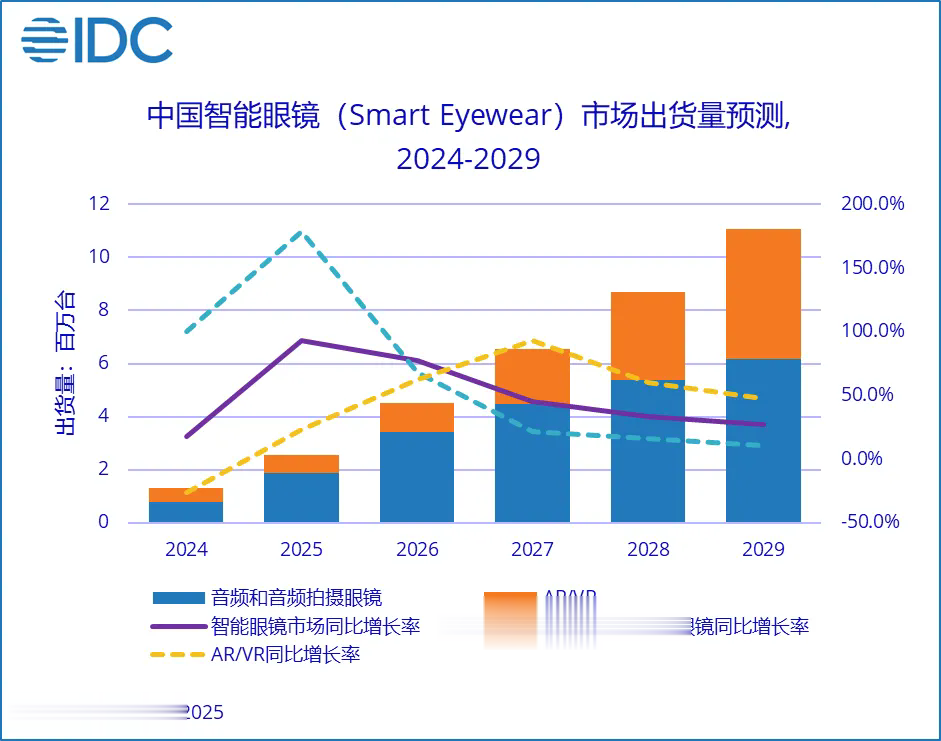 事实上,结合行业趋势来看,魅族的多元化落子颇有见地。比如,随着AI技术逐渐成熟,智能眼镜正逐渐成为行业的一大风口。IDC研报显示,预计2026年,中国智能眼镜市场出货量为450.8万台,同比增长77.7%。