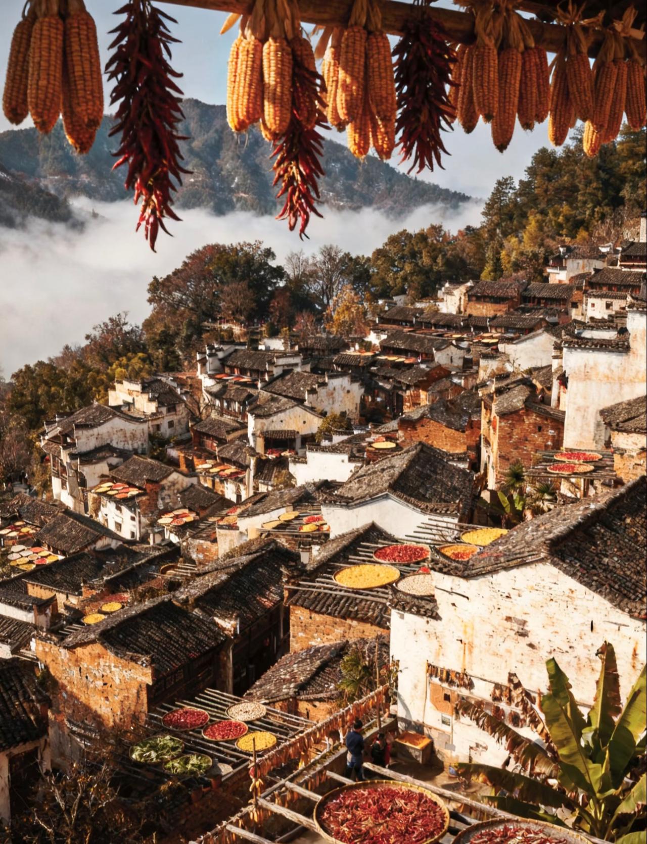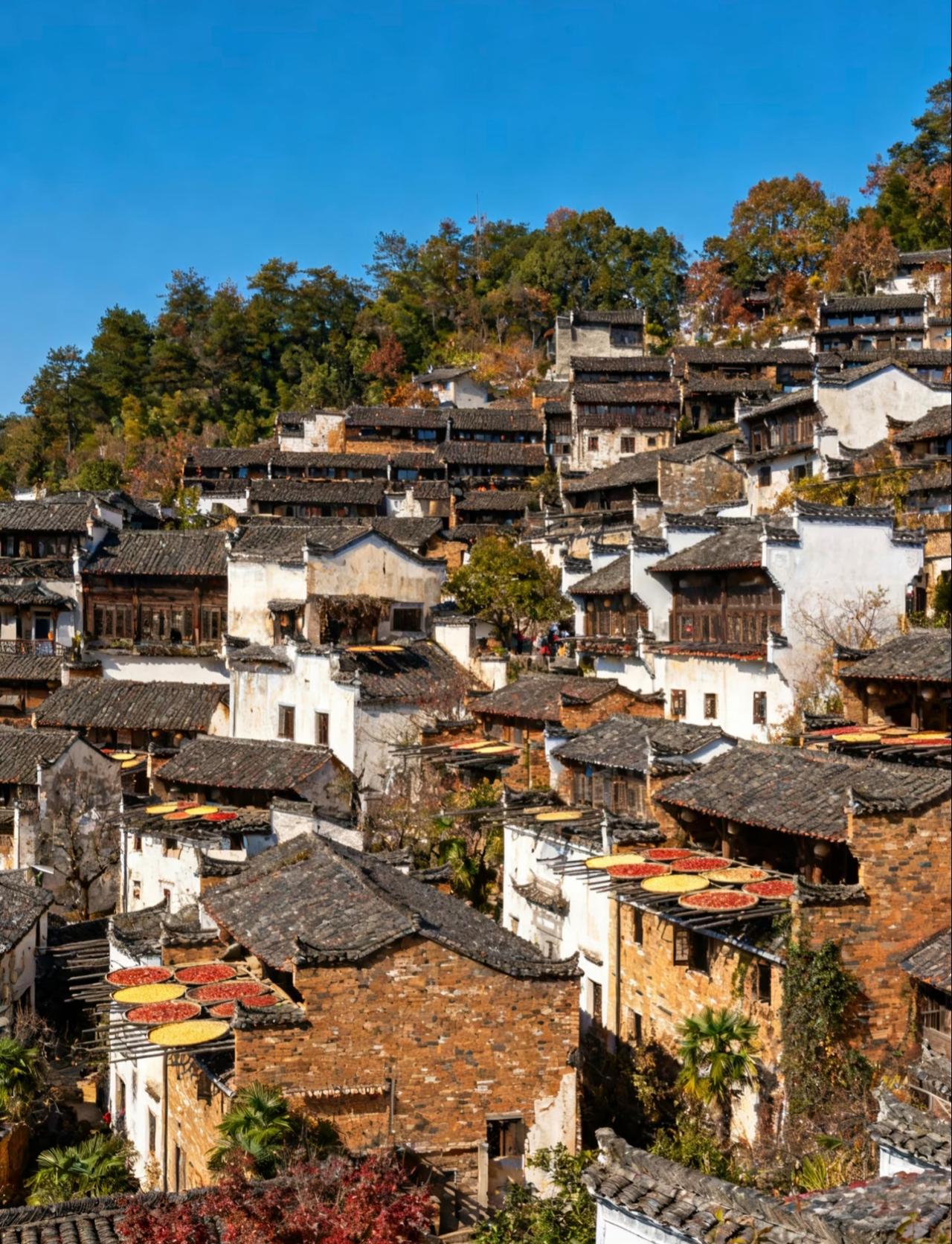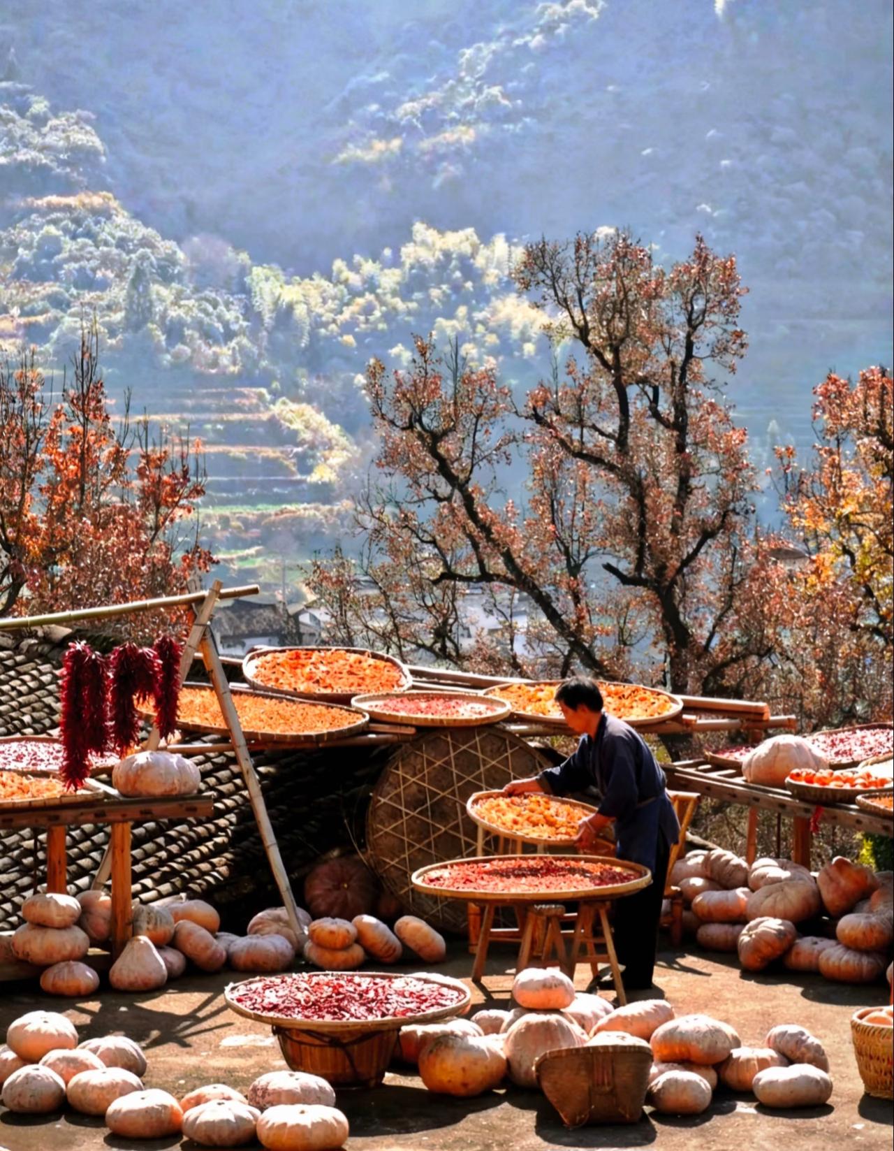 婺源篁岭的冬天, 依旧和往常一样, 被阳光和烟火气包裹着。 在这里, 时间好像放慢了脚步, 让人能尽情享受着, 这份宁静而美好的乡村生活! 篁岭秋色 婺源篁岭景 篁岭旅游 篁岭村晒秋 婺源篁岭景点 婺源秋日风景 篁岭景区的照片