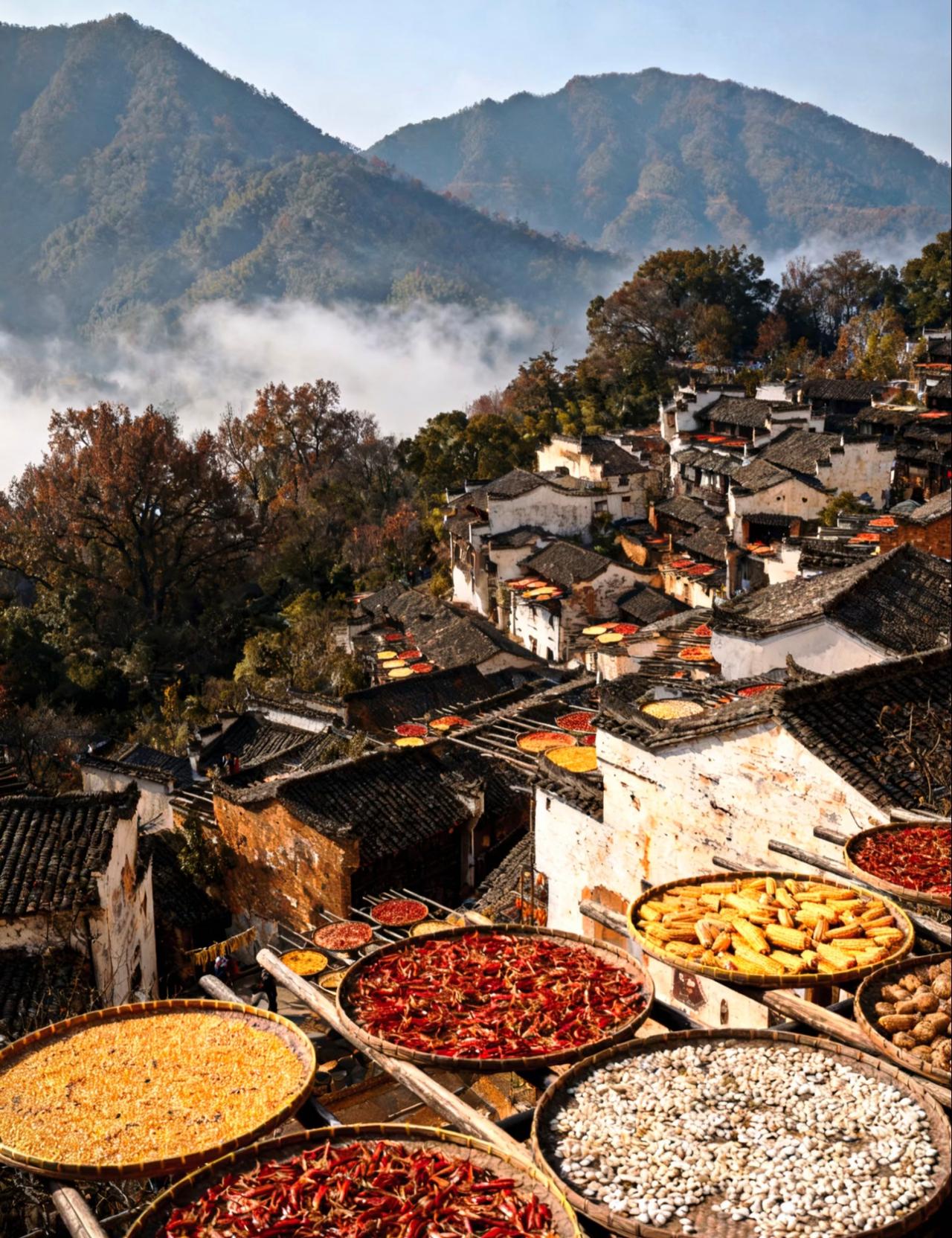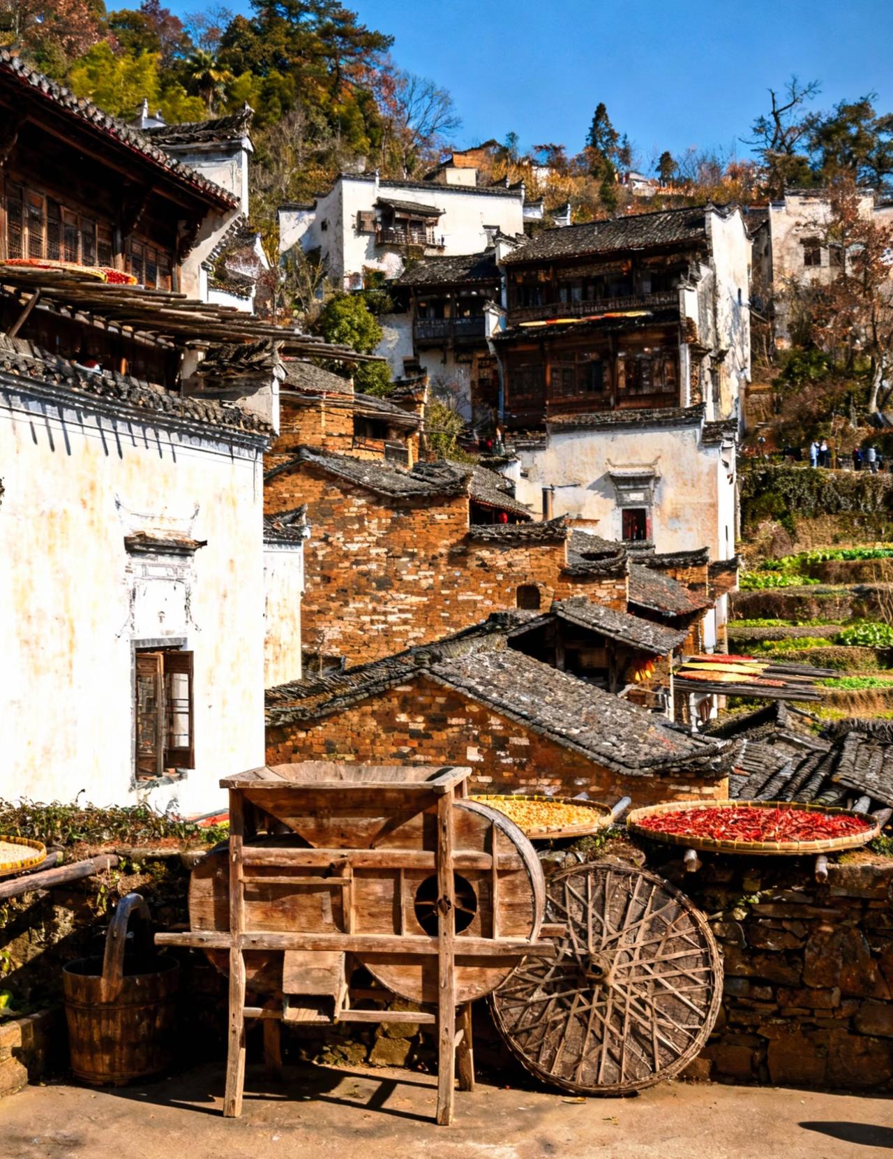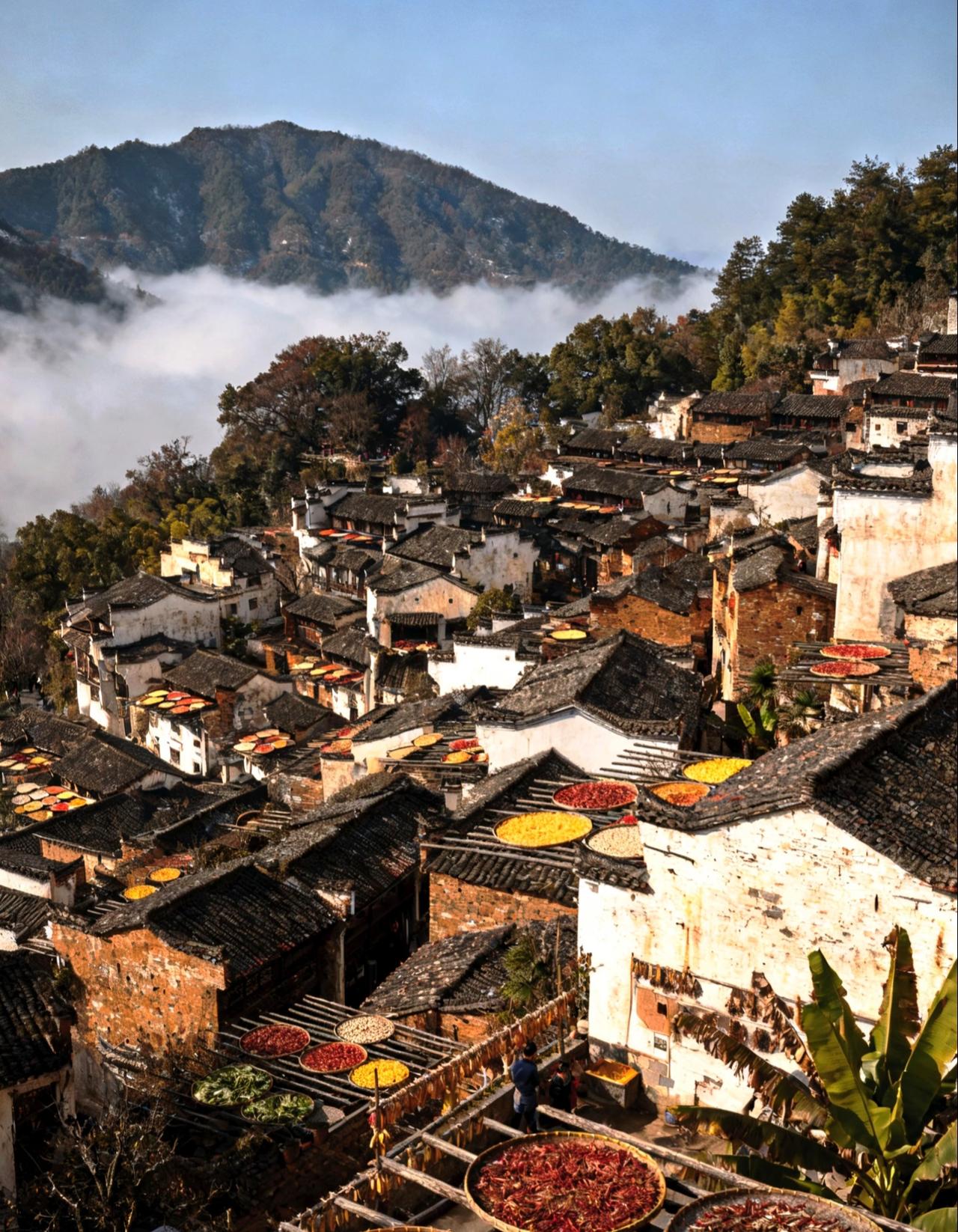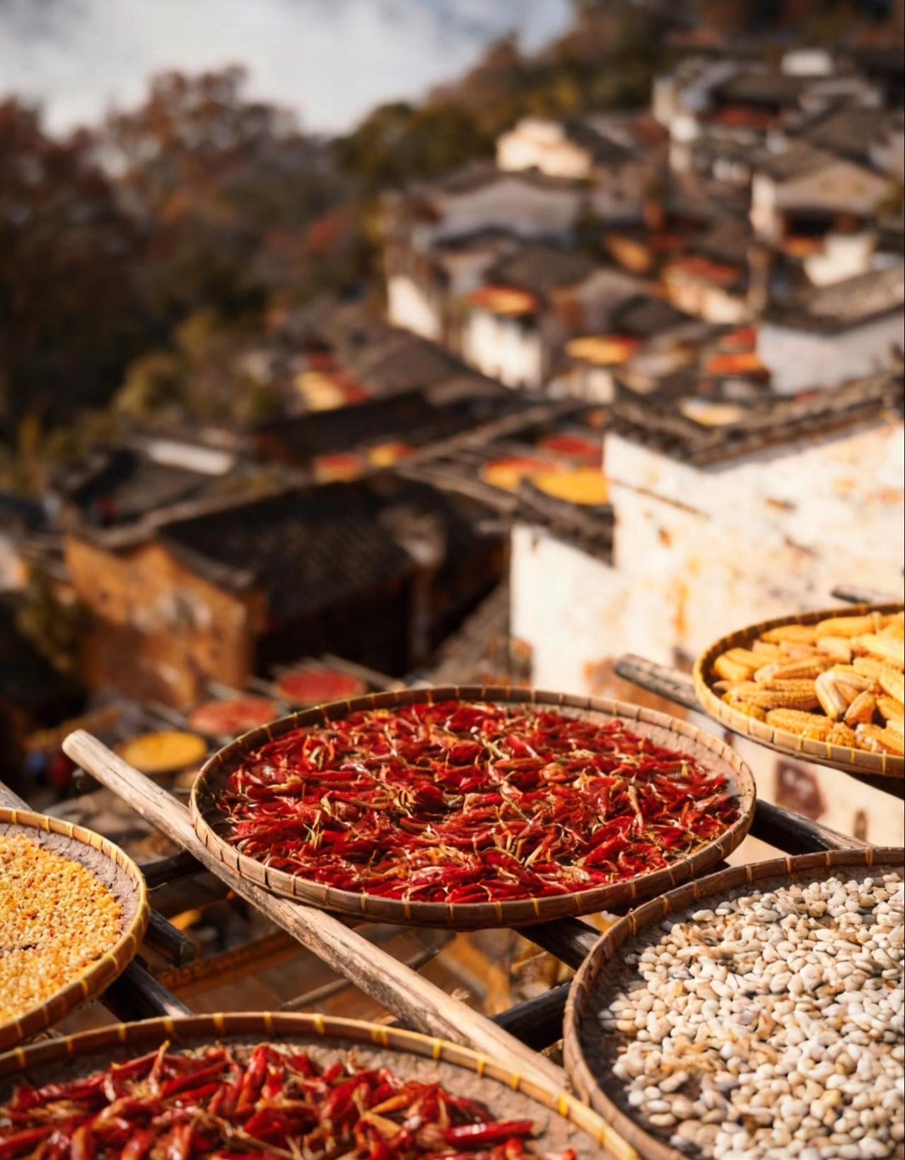 婺源篁岭的冬天, 依旧和往常一样, 被阳光和烟火气包裹着。 在这里, 时间好像放慢了脚步, 让人能尽情享受着, 这份宁静而美好的乡村生活! 篁岭秋色 婺源篁岭景 篁岭旅游 篁岭村晒秋 婺源篁岭景点 婺源秋日风景 篁岭景区的照片