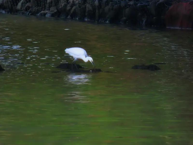 上联:松窗静坐听泉响; 下联:竹径漫步观鹭飞。