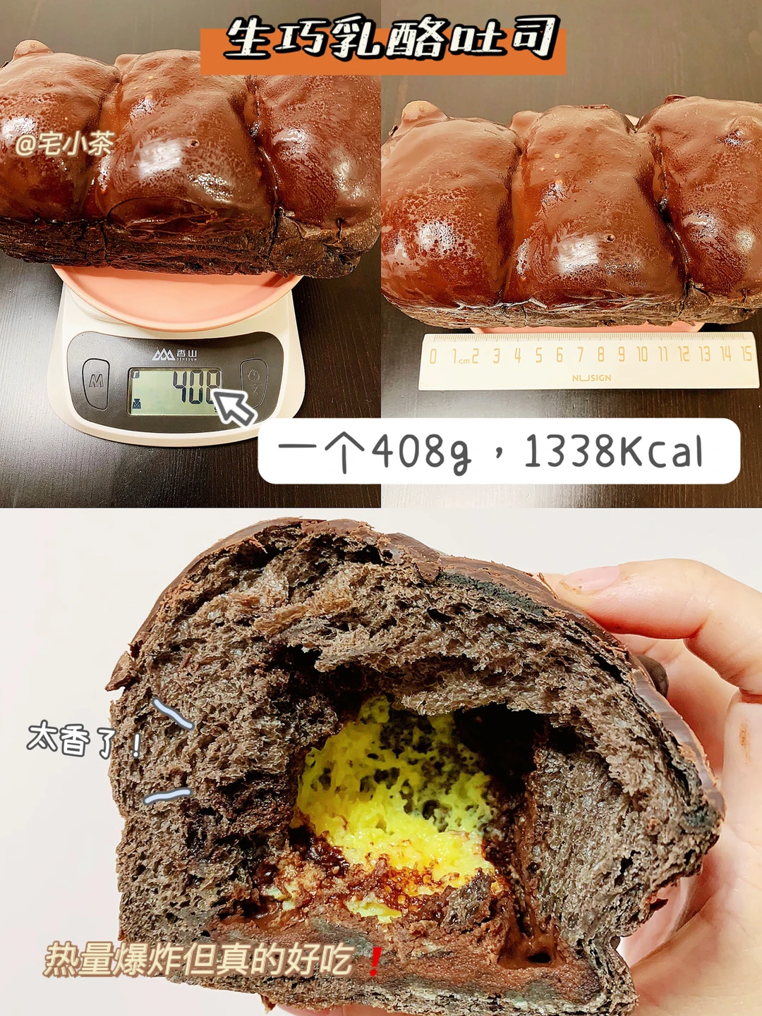 ➡️生巧乳酪吐司:一个重408g,热量1338Kcal
