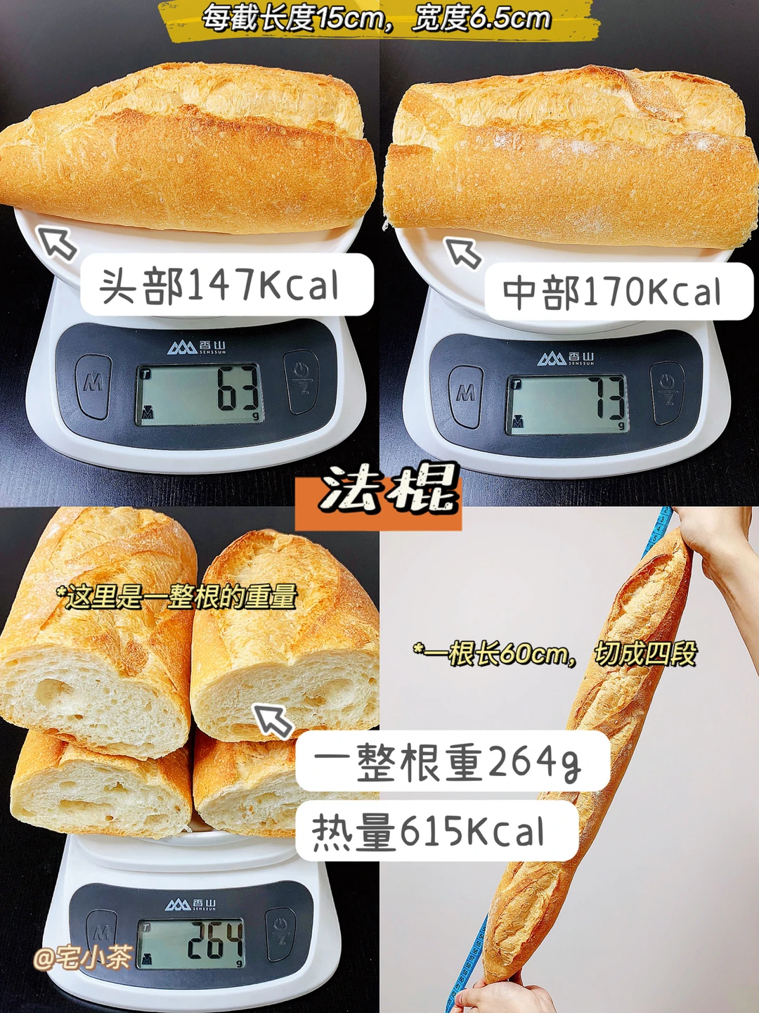 一整根重264g,热量615Kcal