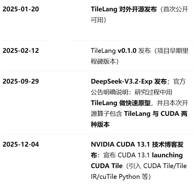 所以去年12月英伟达亲自下场,推出了CUDATile,你可以理解为英伟达官方版本的TileLang。