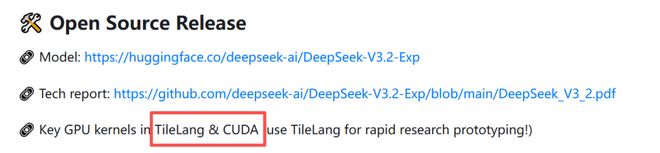 并且前段时间DeepSeek发布V3.2的时候,真的同步发布了两个版本——一个CUDA语言构建的版本,一个TileLang语言构建的版本。