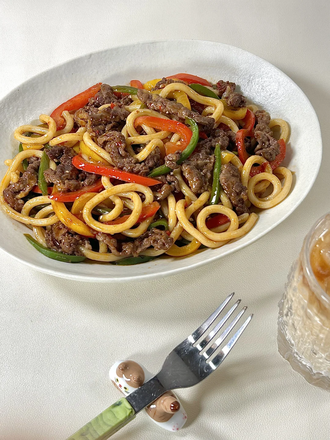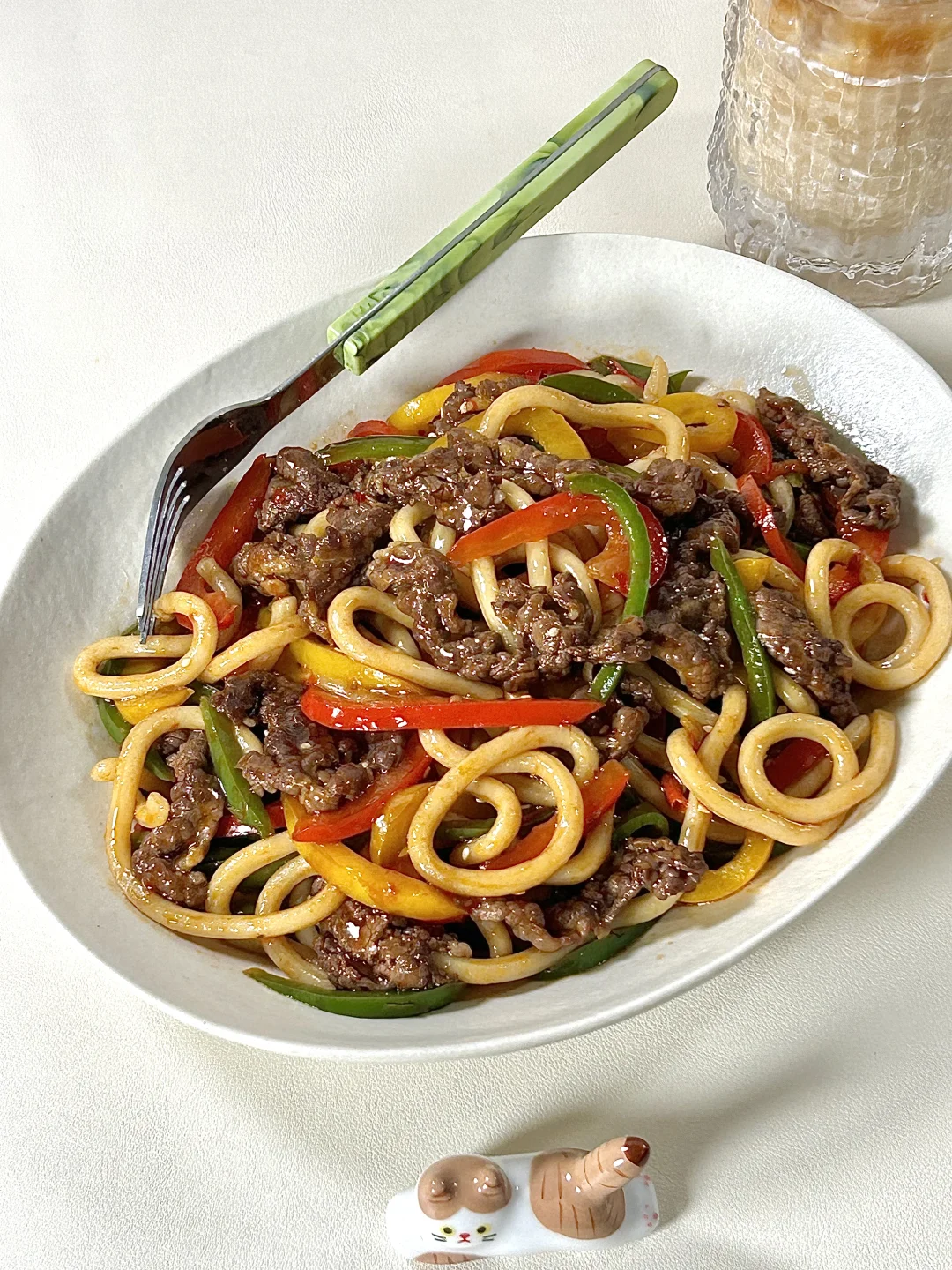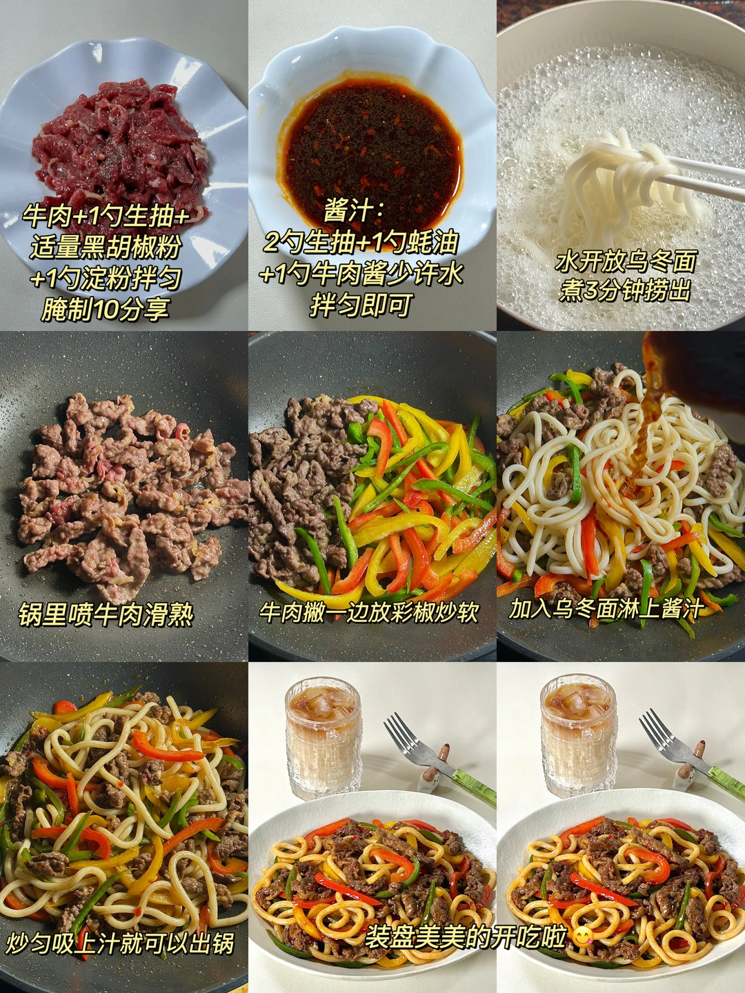 乌冬面的神仙吃法!💯 每一根没面条都挂满酱汁 香味超浓郁~ 🥒食材: 乌冬面+牛肉+彩椒 🫕做法: 步骤在上图⬆️ 营养丰富的牛肉乌冬面🍽️做法简单~ 幸福感满满的一餐☕️