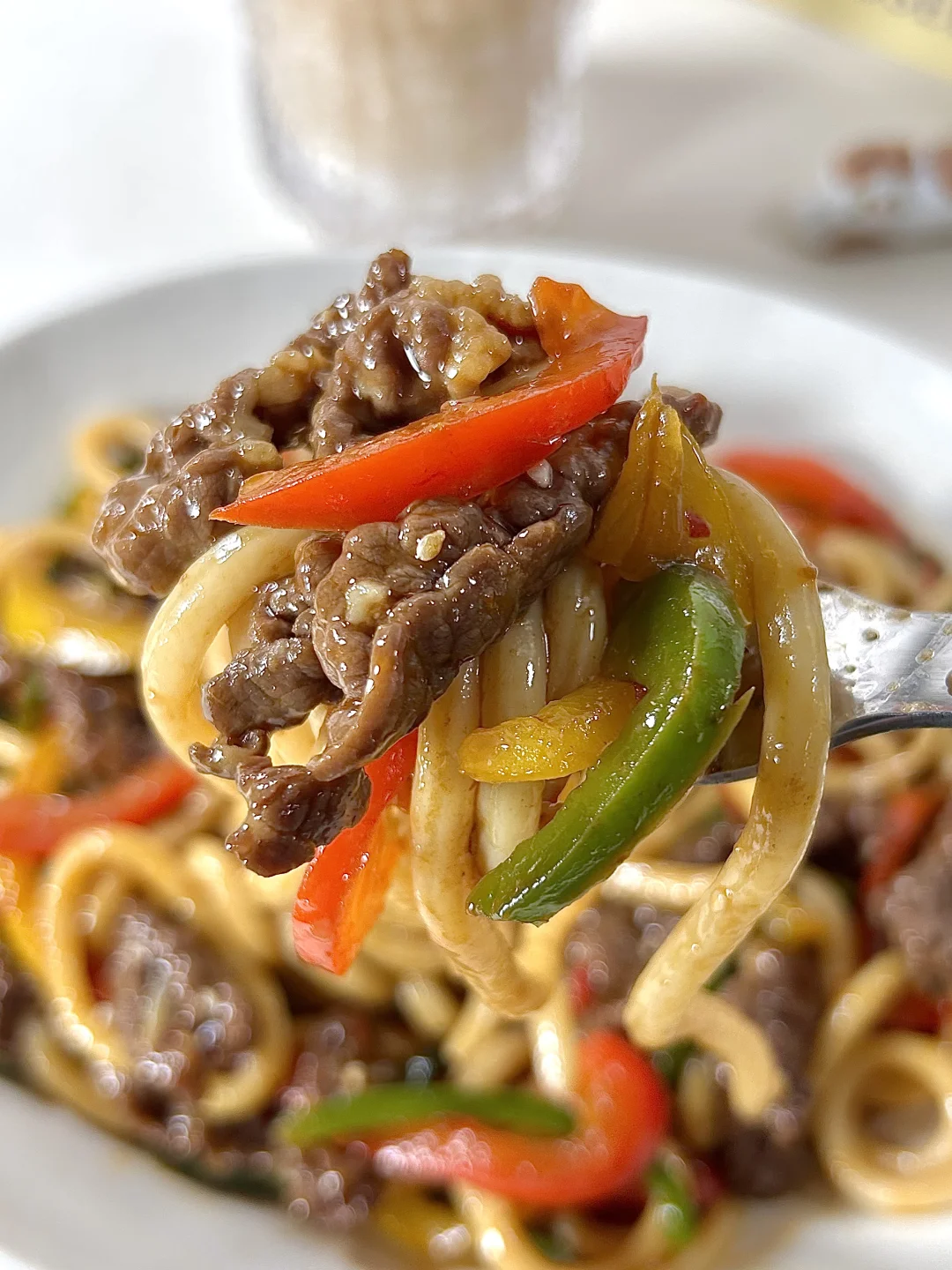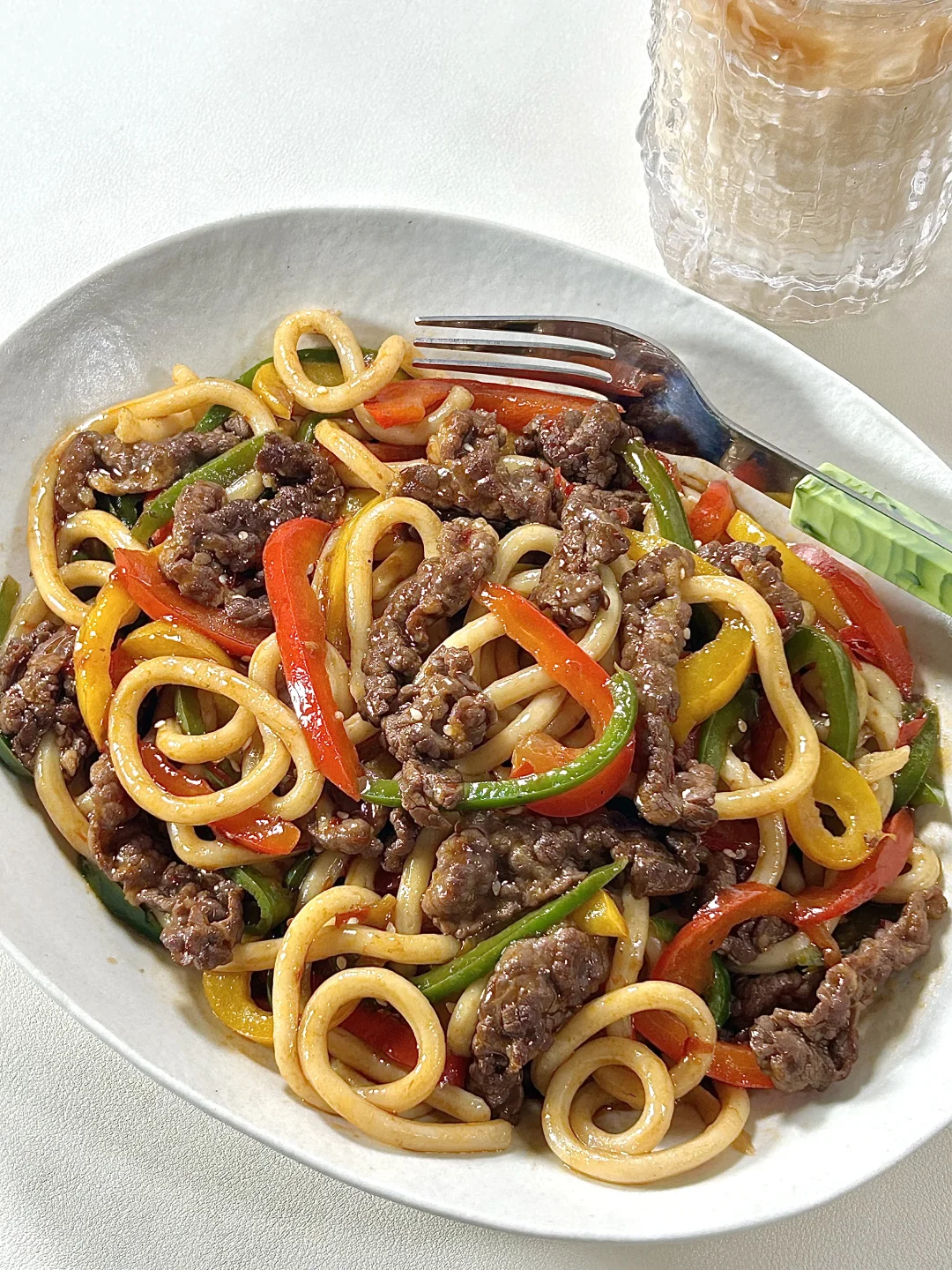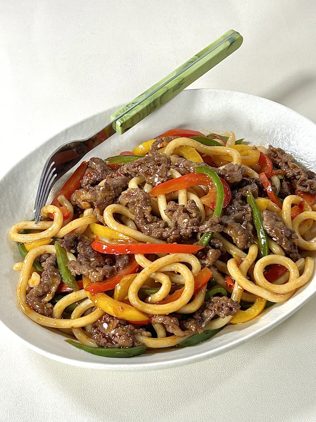 乌冬面的神仙吃法!💯 每一根没面条都挂满酱汁 香味超浓郁~ 🥒食材: 乌冬面+牛肉+彩椒 🫕做法: 步骤在上图⬆️ 营养丰富的牛肉乌冬面🍽️做法简单~ 幸福感满满的一餐☕️