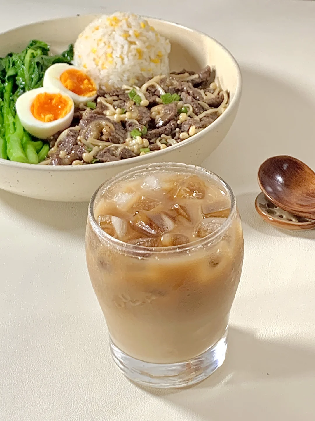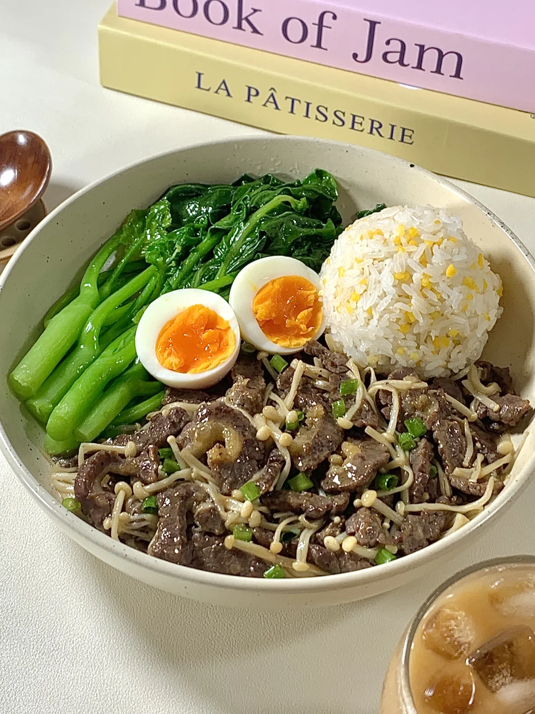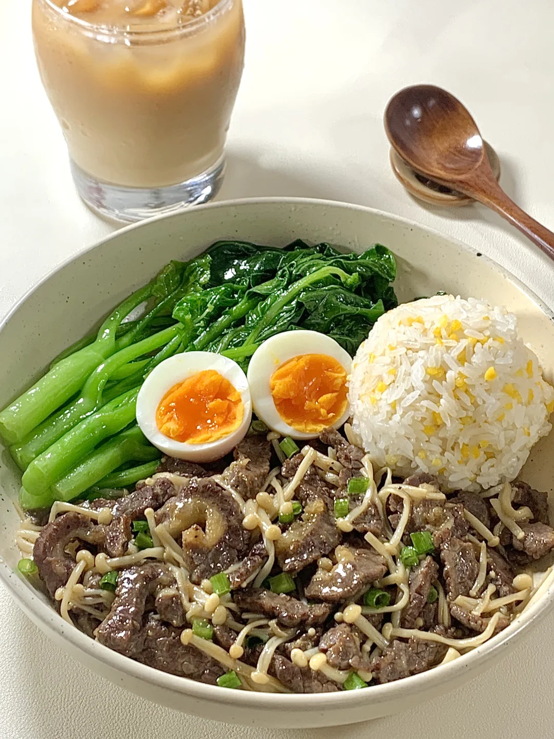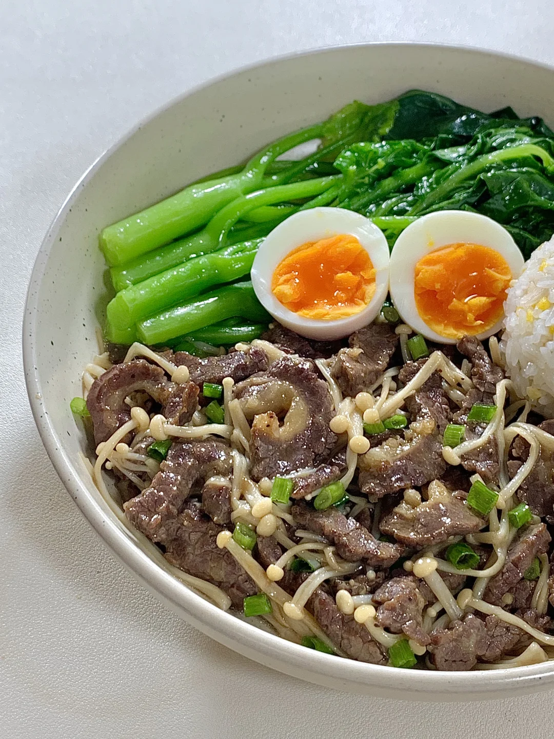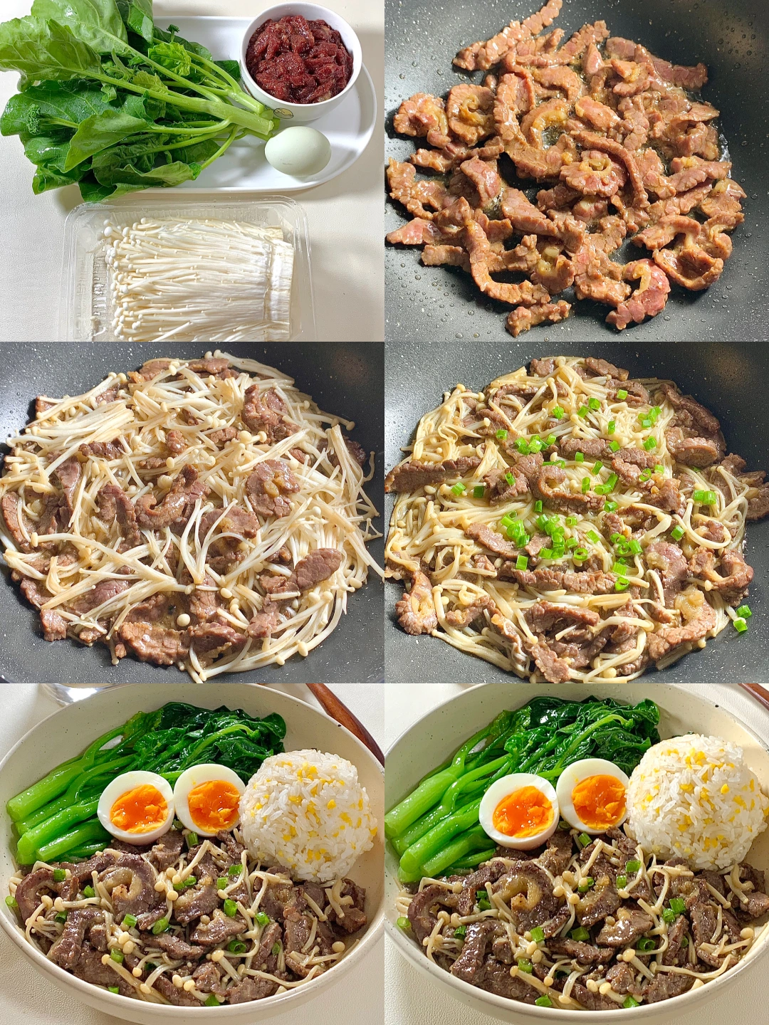 今日减脂餐牛肉炒金针菇!巨鲜嫩😋 📝食材: 牛肉、金针菇、鸡蛋、芥兰、适量玉米饭 ✨步骤: 1️⃣牛肉+1勺生抽+半勺淀粉+喷点油腌制10分钟 2️⃣起锅烧油牛肉炒至8分熟→加入金针菇炒熟→加入适量盐和鸡精葱花调味即可出锅啦✅ 3️⃣锅里放适量水+盐+喷油煮开 放入芥兰菜焯水2分钟捞出~ 🍃装盘美美的开吃啦[色色R] [飞吻R]玉米饭: ✨玉米与大米1:2电饭煲焖熟