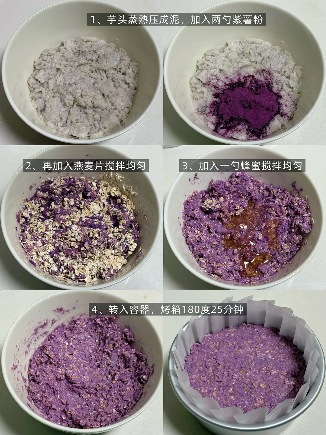 [向右R]食材:芋头、燕麦片、紫薯粉、蜂蜜、无糖酸奶、果干(芋头和燕麦的比例1:1)