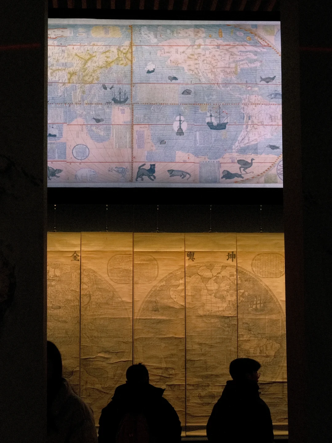 中国最早的彩绘世界地图👍目前展出的是南怀仁所绘《坤舆全图》,是90年来第一次展出!