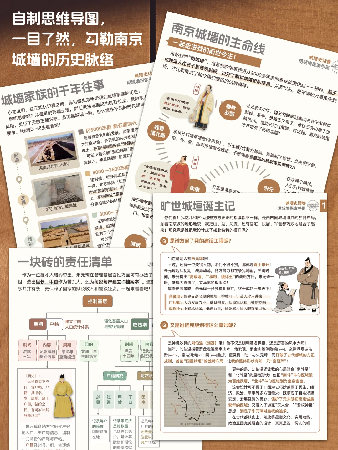 ▪️花了一个月时间,我重点参考了《江苏符号·南京城墙》《唯城能言((南京城墙诗文选录)》《大都无城》3本书的部分内容,不想敷衍孩子,我希望手册里呈现的每个知识点都“有根有据”。