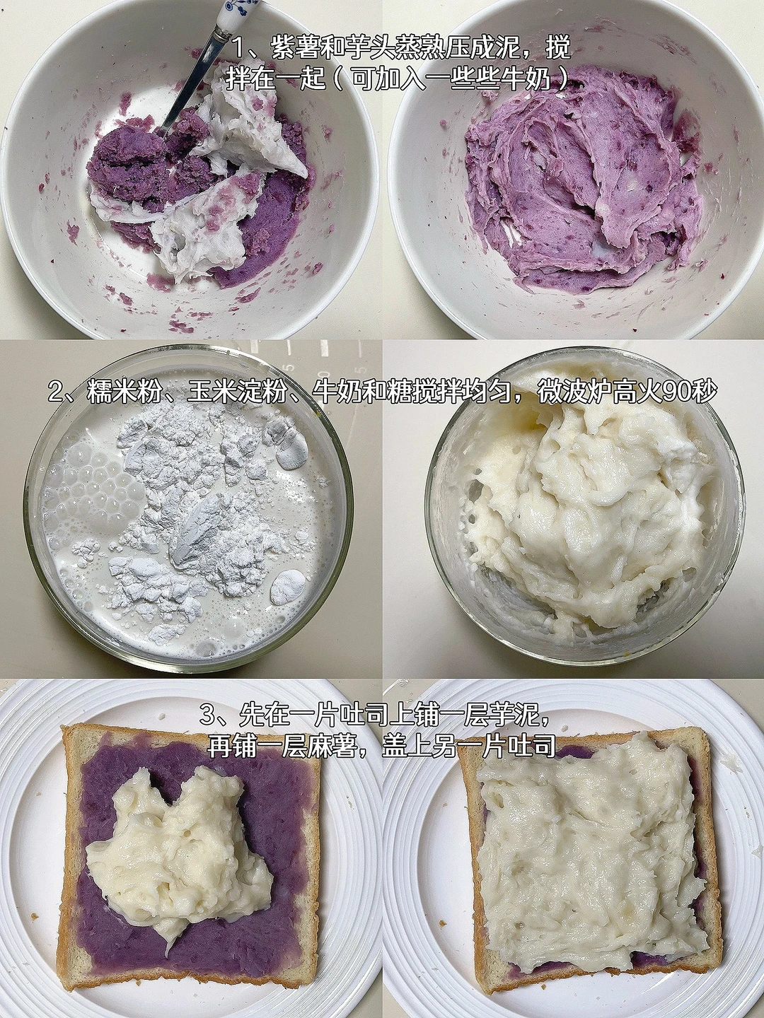 芋泥麻薯三明治…糯叽叽的周一早餐准备完毕