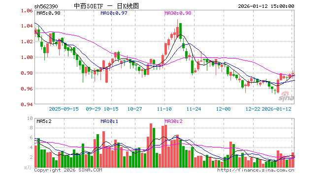 1月12日,中药50ETF(562390)涨0.10%,成交额287.61万元。当日份额增加100.00万份,最新份额为8042.90万份,近20个交易日份额增加200.00万份。最新资产净值计算值为7878.02万元。