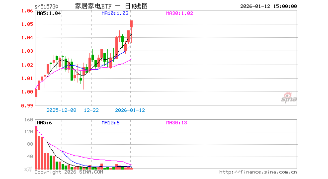家居家电ETF(515730)业绩比较基准为中证家居家电指数收益率,管理人为永赢基金管理有限公司,基金经理为储可凡,成立(2025-11-14)以来回报为5.38%,近一个月回报为3.88%。