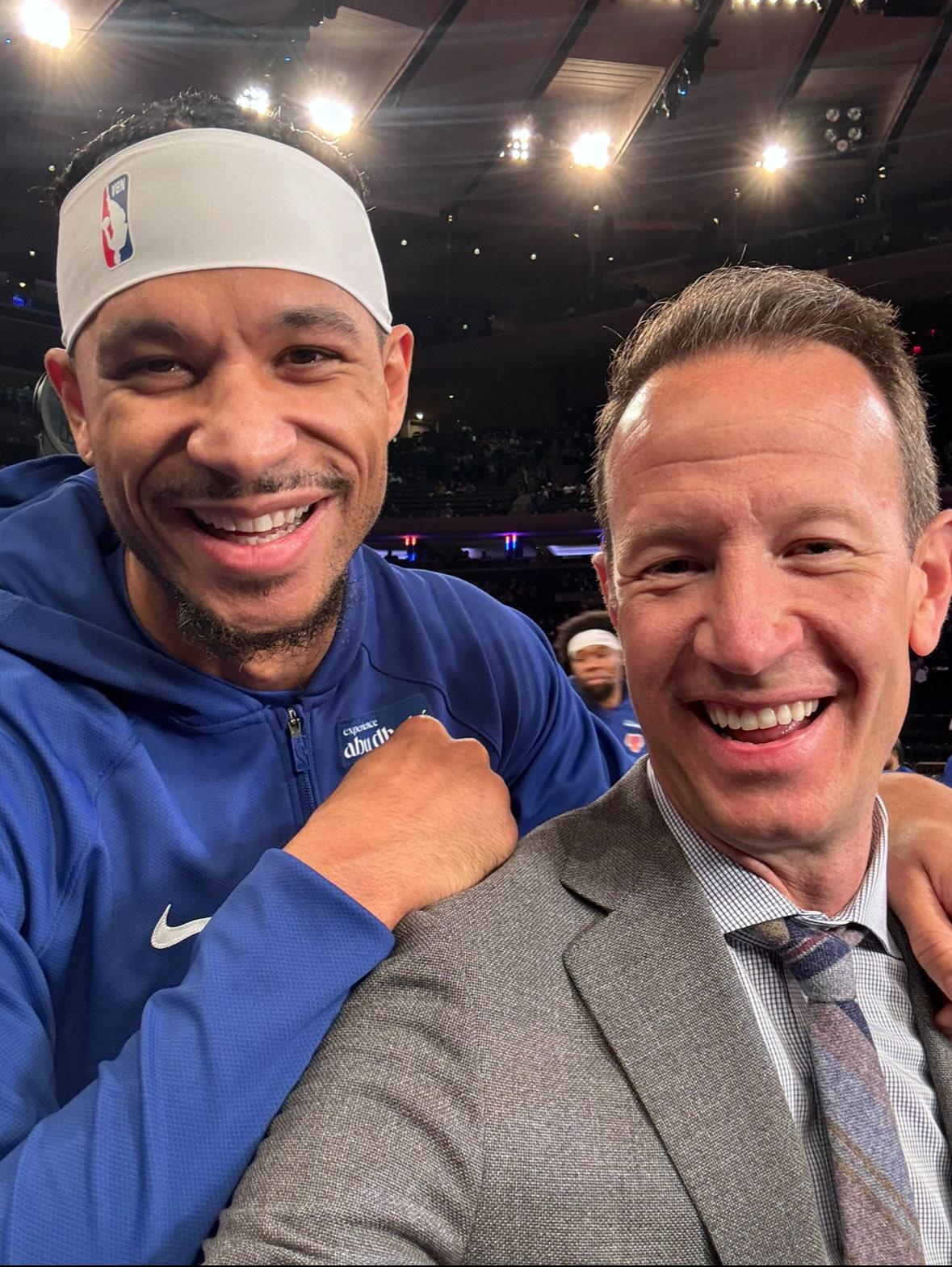 晒出自己与尼克斯球员约什-哈特的两人合影照片。