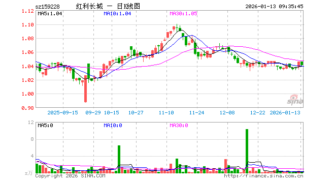 1月13日,红利低波ETF长城(159228)开盘涨0.00%,报1.046元。红利低波ETF长城(159228)重仓股方面,冀中能源开盘涨0.18%,养元饮品跌1.18%,厦门国贸跌0.28%,双汇发展涨0.15%,雅戈尔跌0.13%,苏泊尔涨0.05%,大秦铁路涨0.00%,中国神华涨0.19%,中国石化跌0.34%,江中药业涨0.17%。