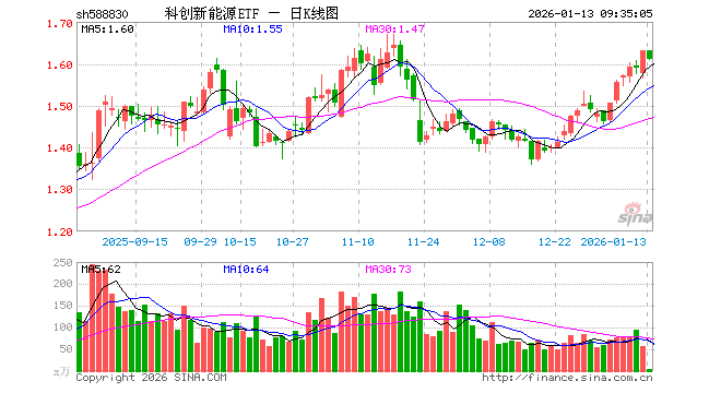 科创新能源ETF(588830)业绩比较基准为上证科创板新能源指数收益率,管理人为鹏华基金管理有限公司,基金经理为闫冬,成立(2024-07-31)以来回报为62.85%,近一个月回报为14.10%。