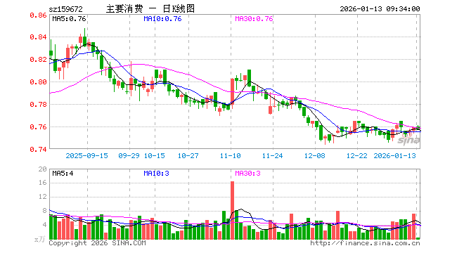 1月13日,主要消费ETF(159672)开盘涨0.13%,报0.760元。主要消费ETF(159672)重仓股方面,贵州茅台开盘涨0.25%,五粮液涨0.41%,牧原股份涨0.20%,伊利股份涨0.00%,温氏股份跌0.12%,泸州老窖涨0.00%,山西汾酒涨0.10%,海天味业涨0.91%,东鹏饮料跌0.61%,海大集团涨0.02%。