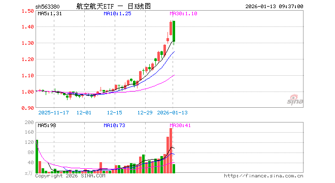 航空航天ETF(563380)业绩比较基准为中证全指航空航天指数收益率,管理人为华泰柏瑞基金管理有限公司,基金经理为谭弘翔,成立(2025-10-29)以来回报为39.77%,近一个月回报为37.76%。