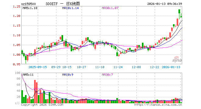 1月13日,500ETF(159500)开盘跌1.32%,报1.196元。500ETF(159500)重仓股方面,胜宏科技开盘跌1.38%,华工科技涨0.77%,润和软件涨0.84%,指南针涨1.47%,芯原股份涨0.23%,四川长虹涨1.06%,巨人网络涨1.19%,东吴证券涨0.00%,菲利华跌1.04%,天风证券涨0.22%。
