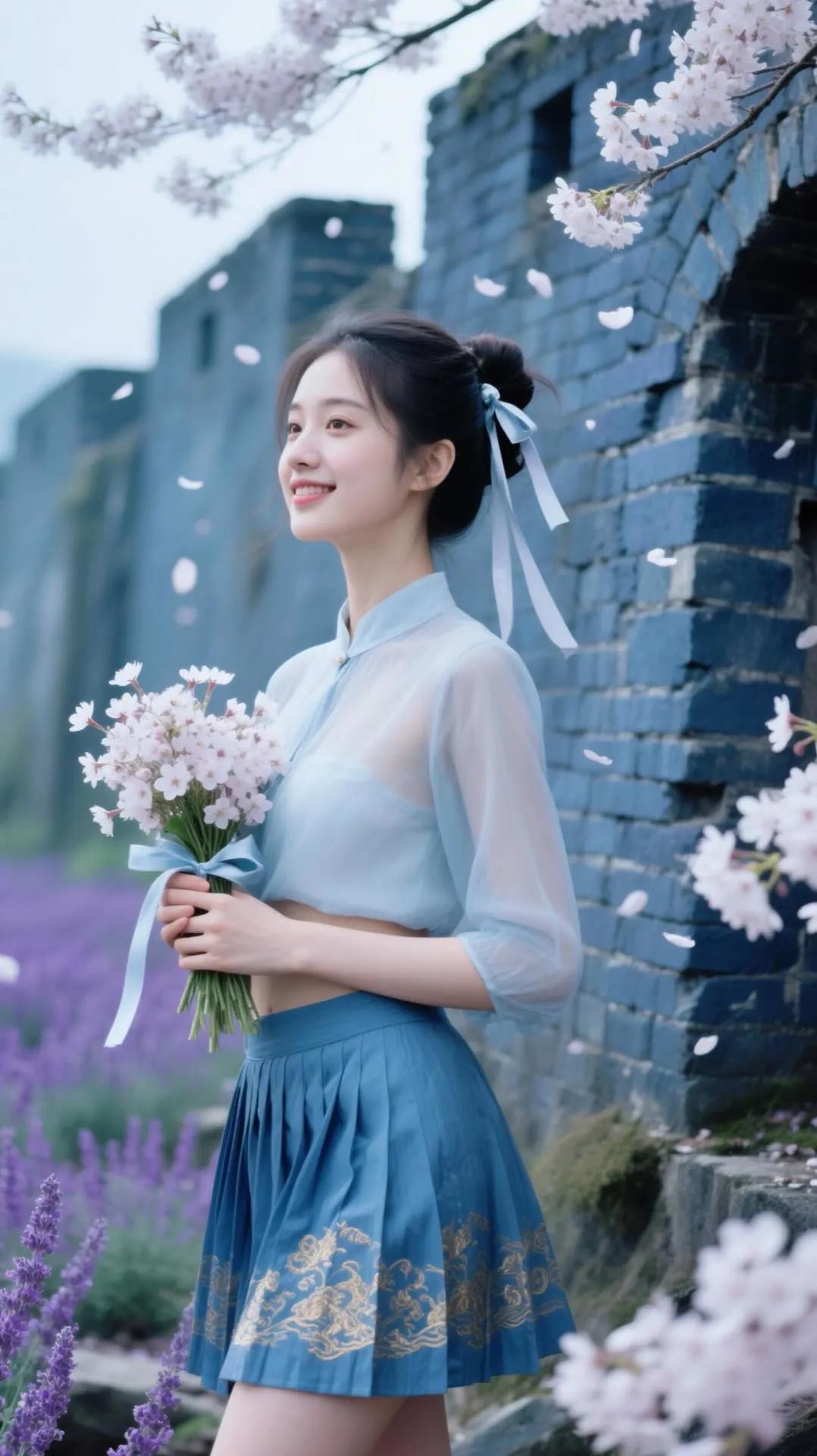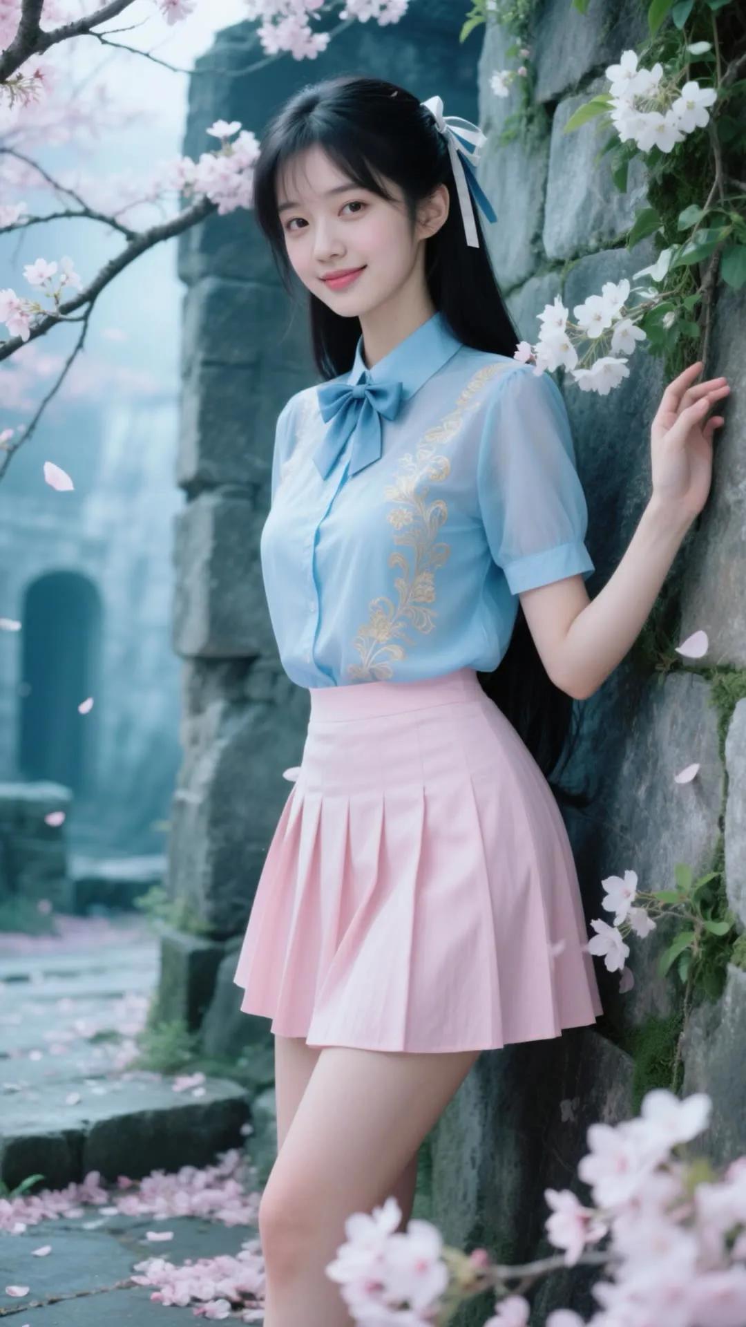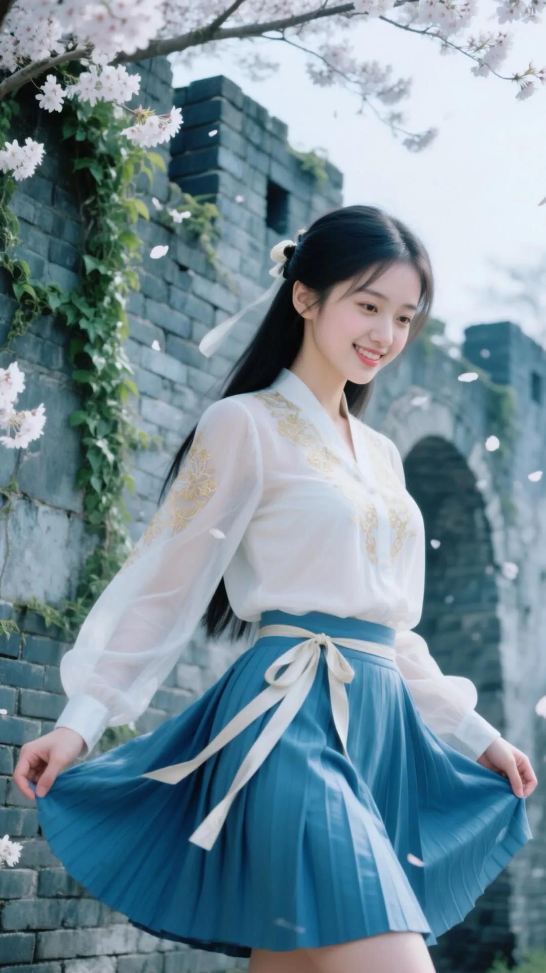 她肤若凝脂,眉蹙远山,眸横秋水,顾盼间星河摇落。笑语如花,一颦一笑尽显温婉之美。