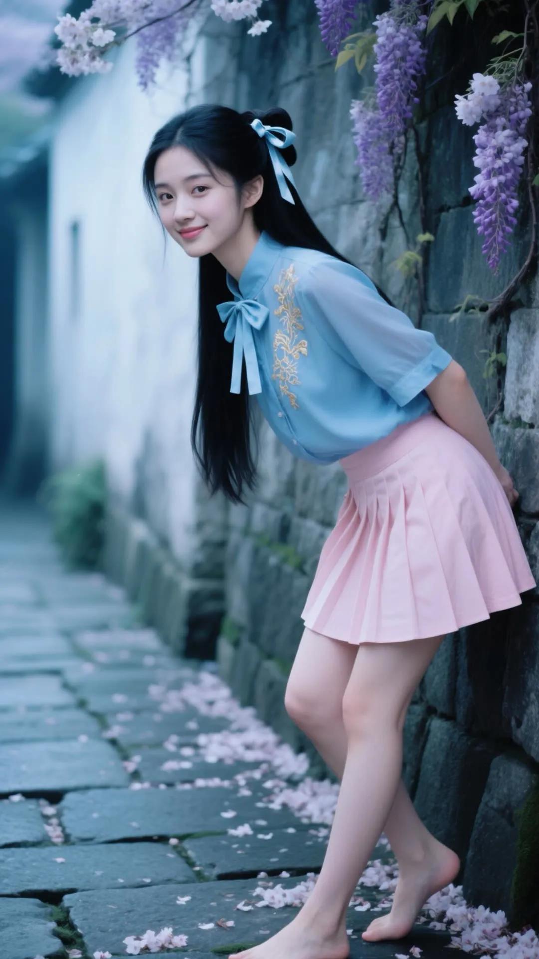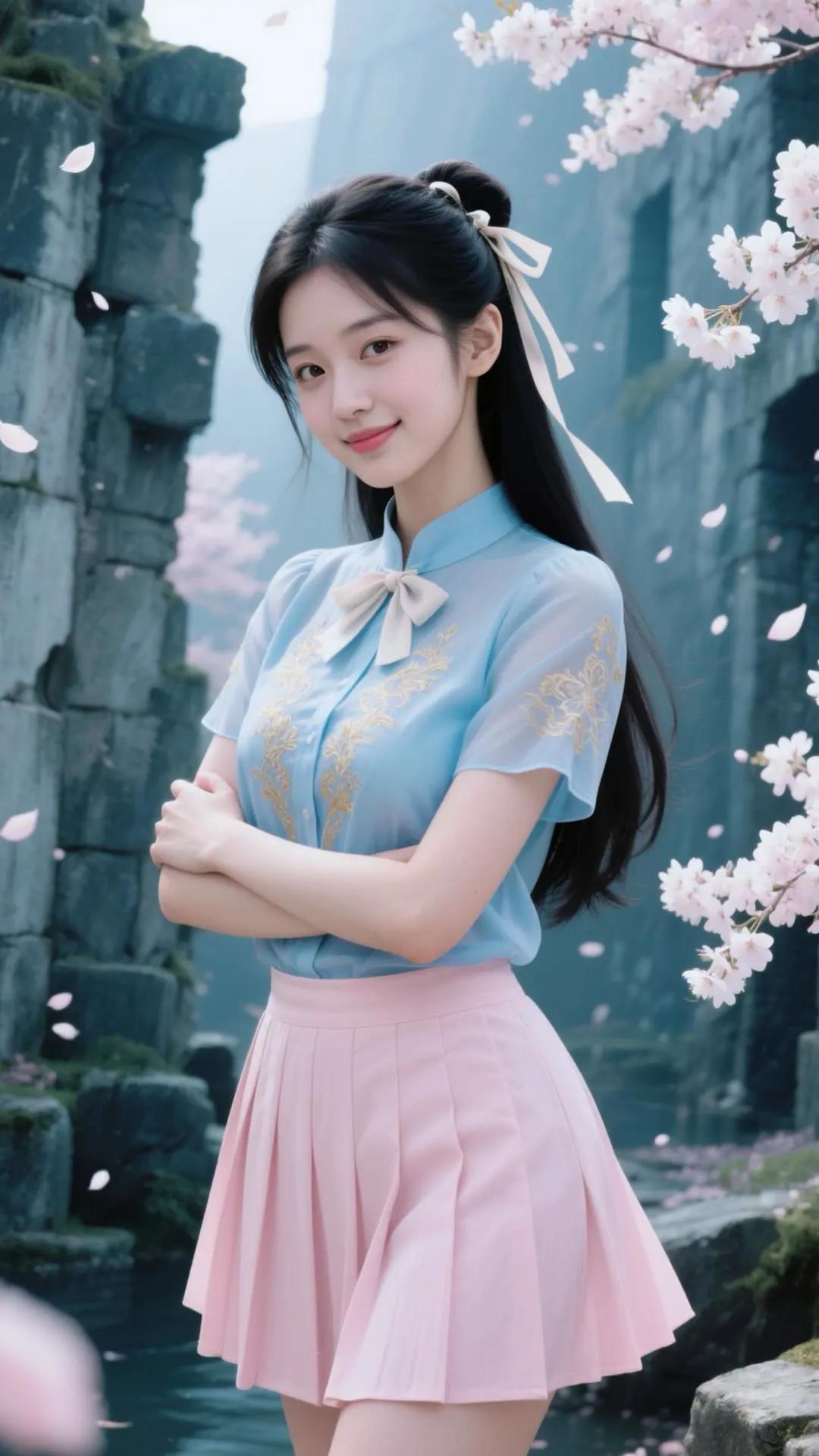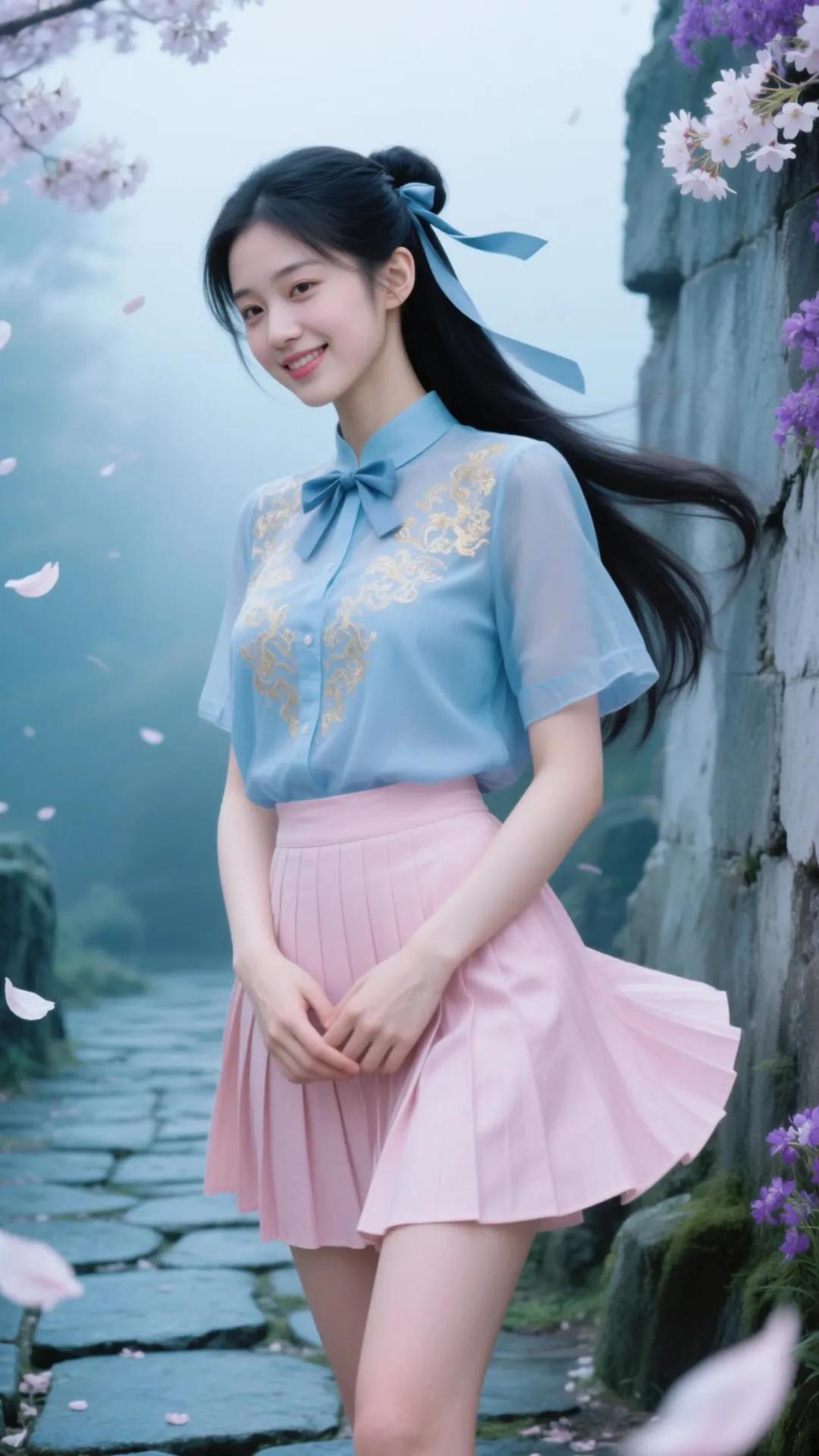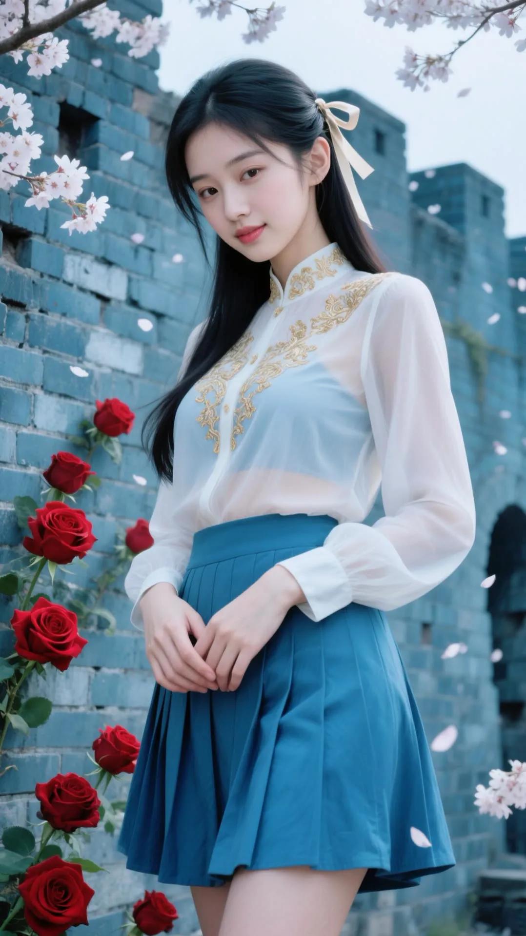 她肤若凝脂,眉蹙远山,眸横秋水,顾盼间星河摇落。笑语如花,一颦一笑尽显温婉之美。