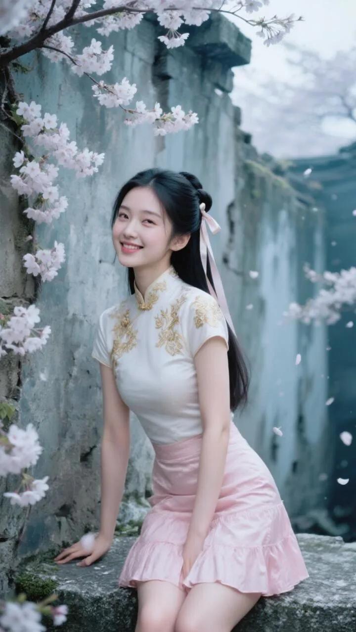 荷畔旗袍的雅柔意荷风裹着水汽漫过塘边,浅缎旗袍上的花绣如沾露的枝桠,盘扣轻