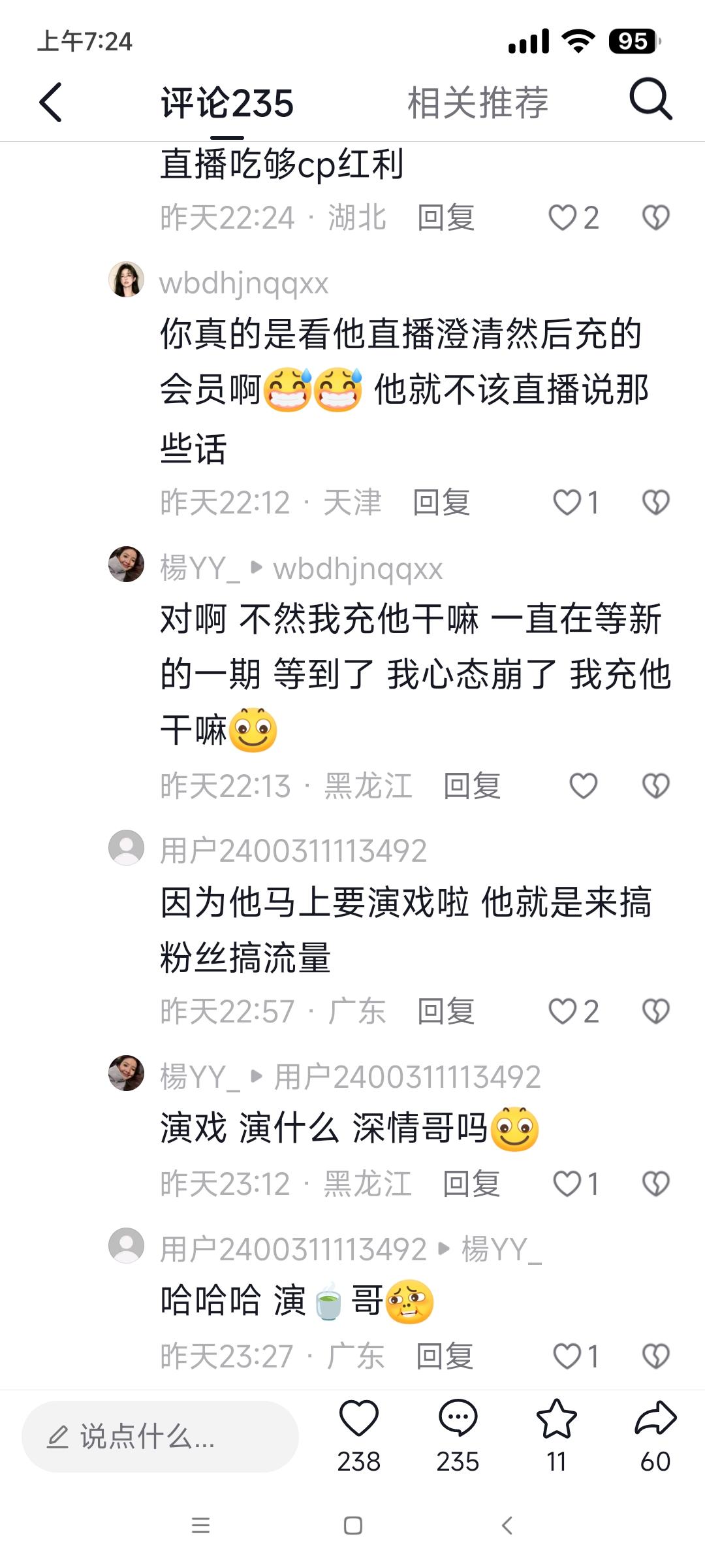 林渝植这是干嘛啊,你要是选了夏夏,就别天天直播,蹭痞幼的热度好吗,这最新一期,对夏夏的态度,真的是180度大反转啊 第一,就是他对夏夏的所有细节都记得清清楚楚,喜欢吃什么,体重多少,都了如指掌 第二,就是夏夏蹦极的时候,一直夸女方,甚至还用到了仙女这样的词汇 自从他一直吊着观众,我就磕不动了,有种大家关注你他,然后他就故意吊着这种,我就觉得把我们当猴耍,不尊重观众 但我觉得,他不管跟谁都不会把对方放在重要的位置,他需要一个情绪稳定带动他的且不能有太多负能量的 至于痞幼,我觉得林不是不喜欢幼,也没有说多喜欢夏,只是幼他可能觉得自己降不住,因为幼太强大,他会有压力。从他如果心疼夏的经历的话,应该还是有点大男人的心理,所以,夏对他的喜欢和需求,会让他有存在感和被重视,他才会选让自己感觉更能把握的吧。 你看看这个老林天天直播,有那时间多写几首歌不行吗!那个夏夏要不是因为风评这么差,不可能不直播的!整天说着模棱两可的话让我们误会,有意思吗? 所以一直以来他选的都是夏,节目播出后发现观众磕的是你和痞幼,每次播出完你就会直播解释引导观众继续看,直到你编不下去,再甩锅节目不能提前剧透,怪不得你会掉粉了呢