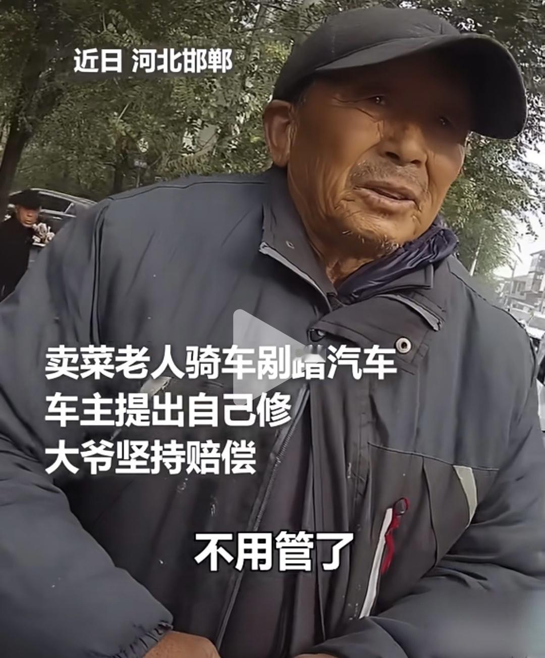 邯郸鸡泽县八旬卖菜翁,刮蹭小车后用暖举诠释责任与共情。 前几日河北邯郸鸡泽县,八旬老人骑三轮车进城卖菜,过马路时不慎刮蹭路边小车,致车辆保险杠脱落,交警到场后判定老人全责。 交警记录完事故细节后,便开始协调双方赔偿事宜,老人全程低着头,语气局促却态度诚恳,反复说着自己不是故意的。 老人主动掏出当日卖菜所得,整整两百块零钱,硬要塞给女司机,女司机见状连忙推辞,称这点小伤自己修就行不用老人掏钱。 双方拉扯间,在场交警都被这一幕打动,最后提出折中方案,让女司机象征性收点钱,算是领了老人的心意。 反观四川成都曾有一起交通纠纷,横穿马路的老者与女司机发生碰撞,老者并无明显外伤,却执意要求去医院做全面检查,还向女司机索要高额赔偿,女司机不堪压力,当场情绪崩溃近乎下跪,当地居民透露,该老者此前就有过类似无理索赔的行为,这一事件当时引发全网热议,不少网友指责老者利用弱势身份牟利。 江苏也曾有一起典型事故,摩托车驾驶员未按规定靠右行驶,撞上逆行横穿车道的三轮车,交警判定摩托车主承担三成责任,三轮车主任七成,事后摩托车维修费用高达十余万元,这案例提醒所有道路使用者,交通规则的细节不容忽视,哪怕是看似不起眼的靠右行驶,都可能影响责任划分与经济损失。 据某社交平台数据显示,鸡泽县这起暖心事件相关话题阅读量超五亿,评论区九成以上网友为双方点赞,不少人分享了自己遇到的类似暖心经历,有网友说曾看到外卖小哥刮蹭豪车,车主直接摆手让他走,还有网友说自己不小心碰坏邻居东西,邻居不仅没要赔偿,还反过来安慰自己,这些小事汇聚起来,成了社会里的暖流。 当地民政部门后来联系老人,了解到他平时靠卖菜每月赚千余元,除了自己开销,还攒钱给孙辈买文具,刮车后他怕子女责怪,所以坚持自己解决 不愿麻烦孩子。 这起事件的暖心之处在于双向的善良 ,老人的坚持是底层劳动者刻在骨子里的本分,一辈子靠卖菜谋生深知每一分钱的重量,但犯错就该担责这种朴素的责任感,戳中了很多人的内心。 女司机的让步则是源于对他人处境的共情,她明白老人的两百块可能是几天的生活费,不愿让本来就不易的老人再添负担,当下社会常因利益纠纷变得紧绷,而这起事件 就像一束微光 消解了部分人对陌生人的防备。 双向善良的背后是对他人的尊重,老人尊重规则主动担责,女司机尊重他 人处境主动让步,这种尊重让原本可能的矛盾变成了温暖的邂逅。 有网友留言: 现在这社会,能做到这样的车主和老人,简直是活久见!太暖心~ 我觉得这才是人与人之间最该有的样子,双向的善良比什么都珍贵。 要我说,这事真的给所有人上了生动一课,咱普通人过日子谁都可能遇上点磕磕碰碰,像老人那样不躲不逃认账担责,像女司机那样懂得体谅换位思考,日子才能过得暖心踏实,老人的两百块是血汗钱,他的坚持是本分 ,女司机的让步是善良,不管咱啥身份啥处境守住这份本心比啥都强,希望这样的暖心事儿能越来越多,让社 会多些温度少些摩擦。 这事你怎么看?