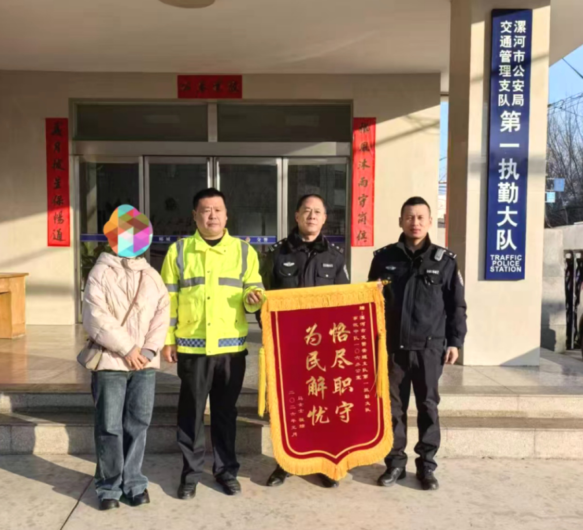 “没想到短短8小时就抓到肇事者,真是人民的好交警!”近日,市民马女士带着一面绣有“恪尽职守,为民解忧”的锦旗,专程送到漯河市公安局交通管理支队第一执勤大队,向办案民警表达诚挚谢意。