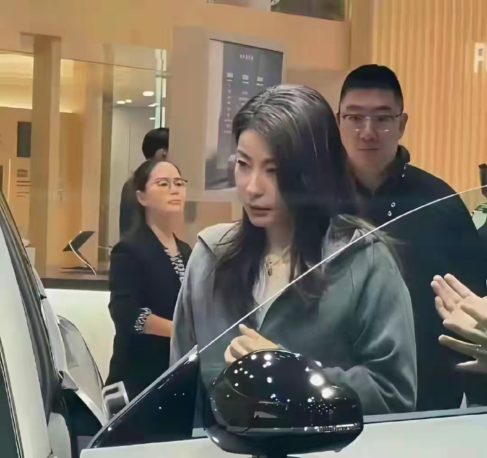 郭晶晶素颜看车,穿着朴素,头发不染也不烫,美丽大方接地气!