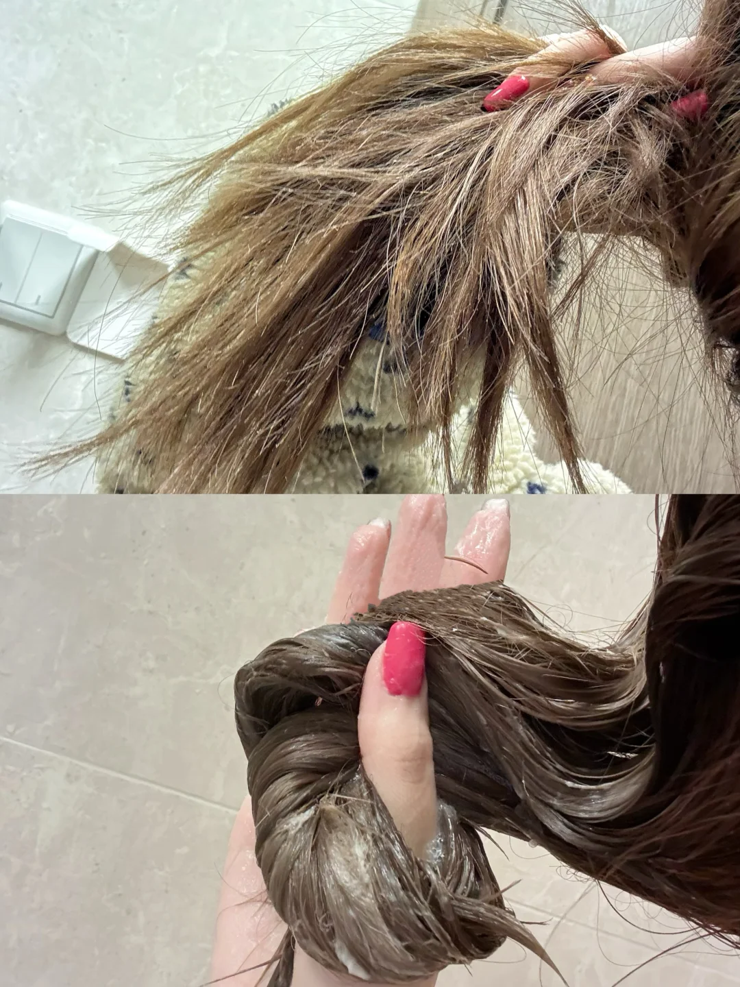 烫染发美不美不在颜色,重点是发质!在美的颜色洗出来的头发像枯草也是白搭,烫染发的后续护理才是重中之重~因为咱们在漂染发过程中毛鳞片受损,不光不锁水,还更容易炸毛干燥,真的试用过很多很多的护发产品,几十到几百都有,但是只有kokomi蚕丝修护发膜能让我这把枯草变成水光发,每次漂染护理就靠它来回血!