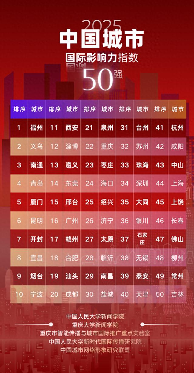 近日,《中国城市国际网络形象指数报告(2025)》(以下简称《报告》)在重庆正式发布。该报告从国际传播力、国际影响力与国际认同力三大维度对全国106座大城市的国际网络形象进行了全面分析。淄博市的国际传播表现出色,其国际影响力位居全国前列,国际影响力在II型大城市中排名第6。