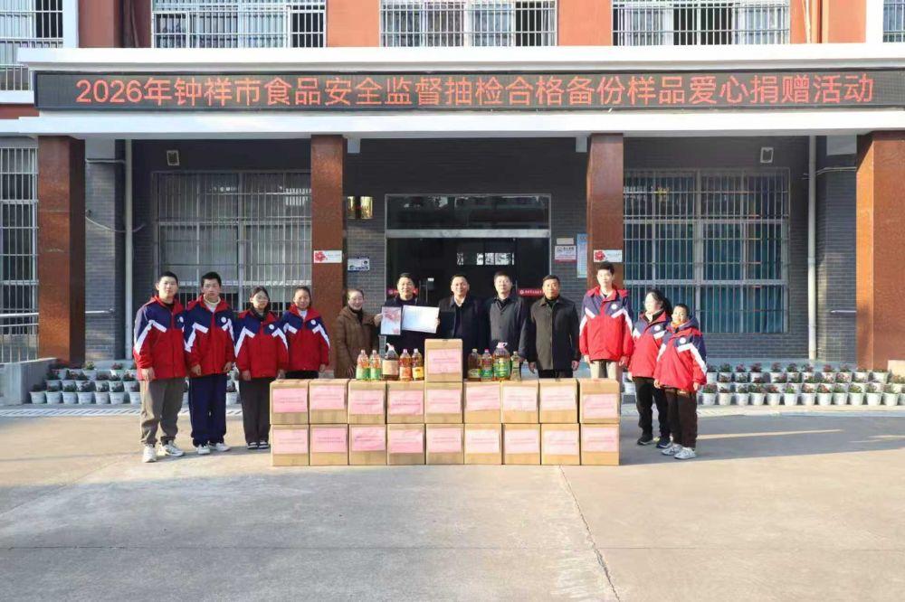 1月12日下午,钟祥市市场监督管理局在钟祥市特殊教育学校开展食品安全监督抽检合格备份样品爱心捐赠活动。钟祥市副市长李辉、钟祥市市市场监管局局长杨代忠、钟祥市教育局局长郑万国等出席。